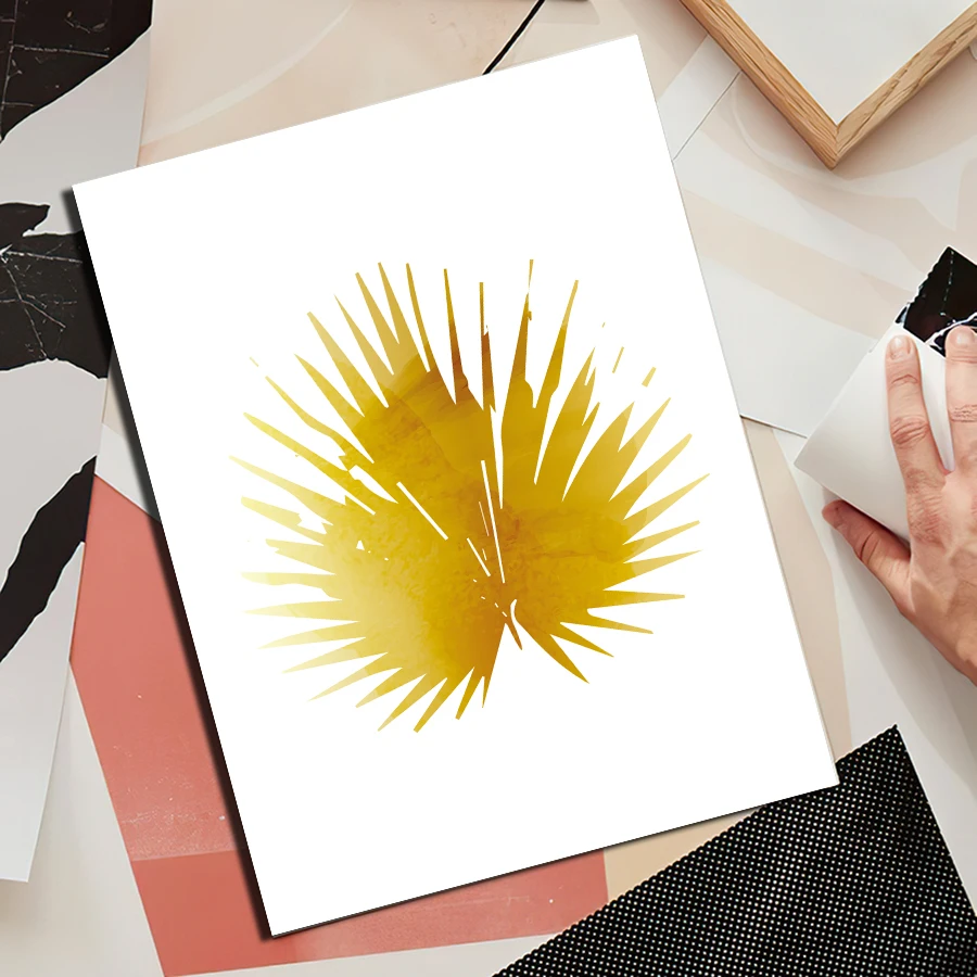 Абстрактная Современная Настенная картина с золотыми листьями, роск...