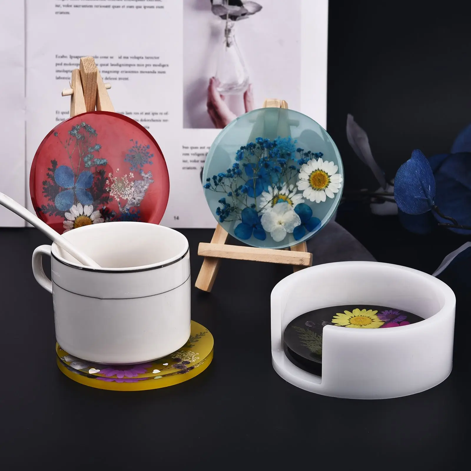 Круглая искусственная смола, силиконовая форма, подставка с подстав...