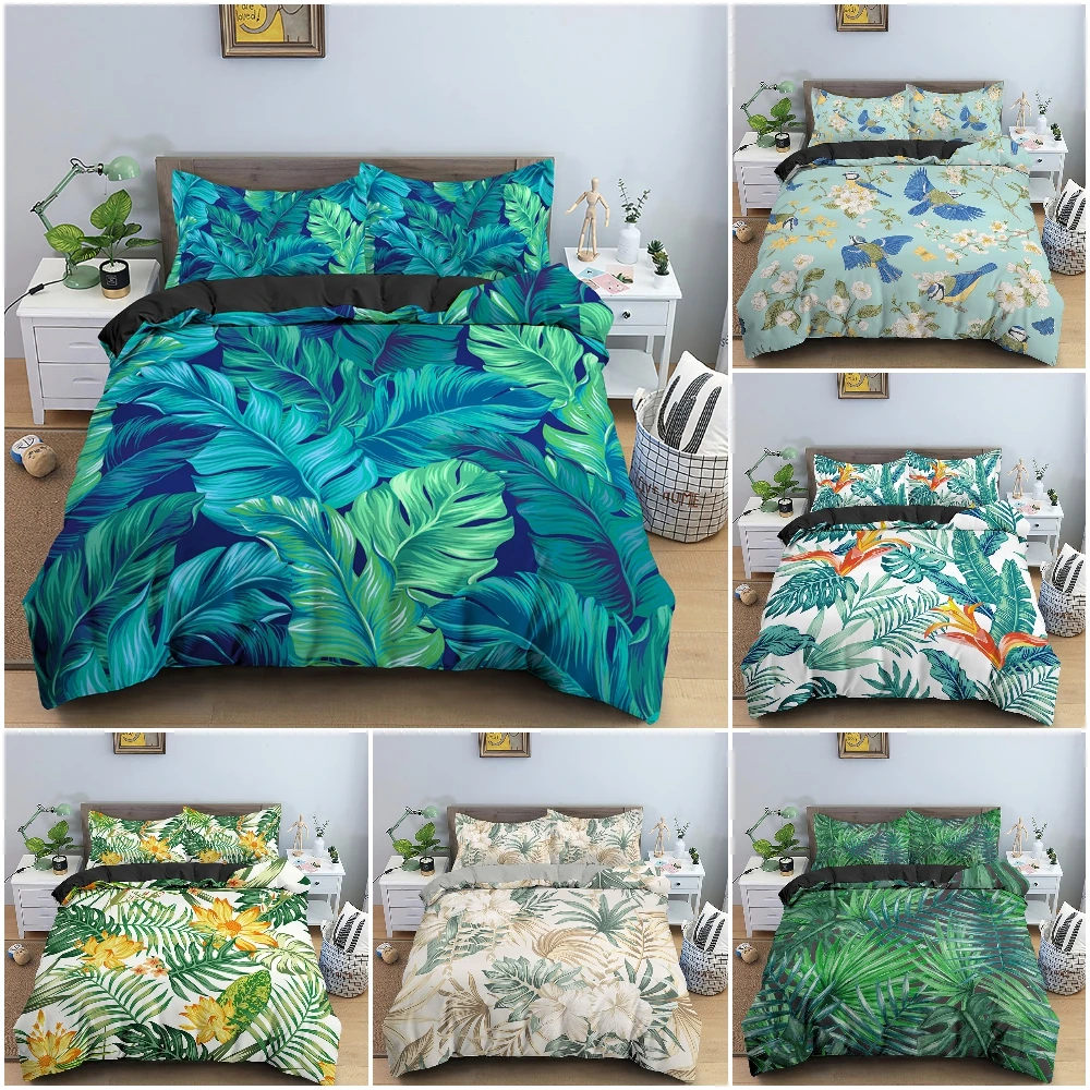 Комплект постельного белья с тропическим изображением листьев, комп...