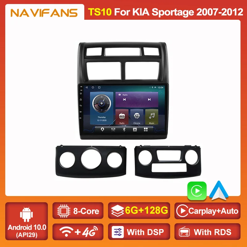 Автомобильное радио, мультимедийный видеоплеер, 6G + 128G, Android 11, для Kia Sportage 2 2007, 2008-2012, GPS-навигация, головное устройство, стерео приемник