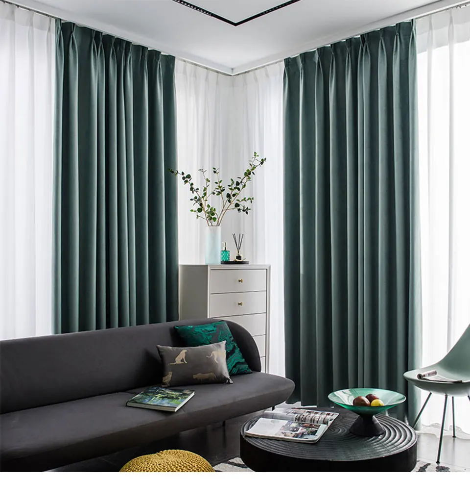 Солидные затемненные занавески для спальни, зеленые детские занавес...