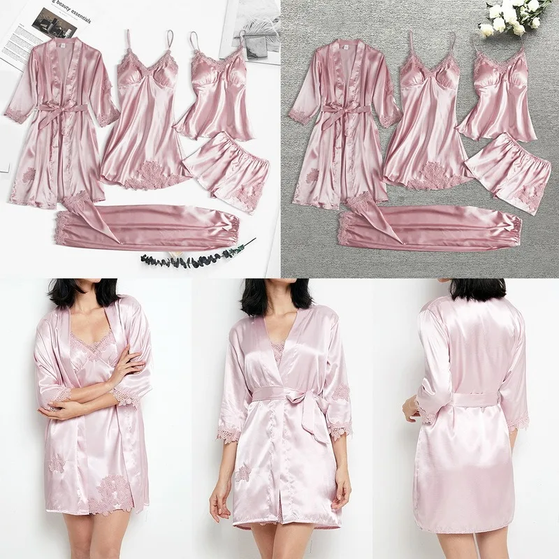 4-5 шт. шелковый халат, костюм для сна, женский кружевной Атласный ...