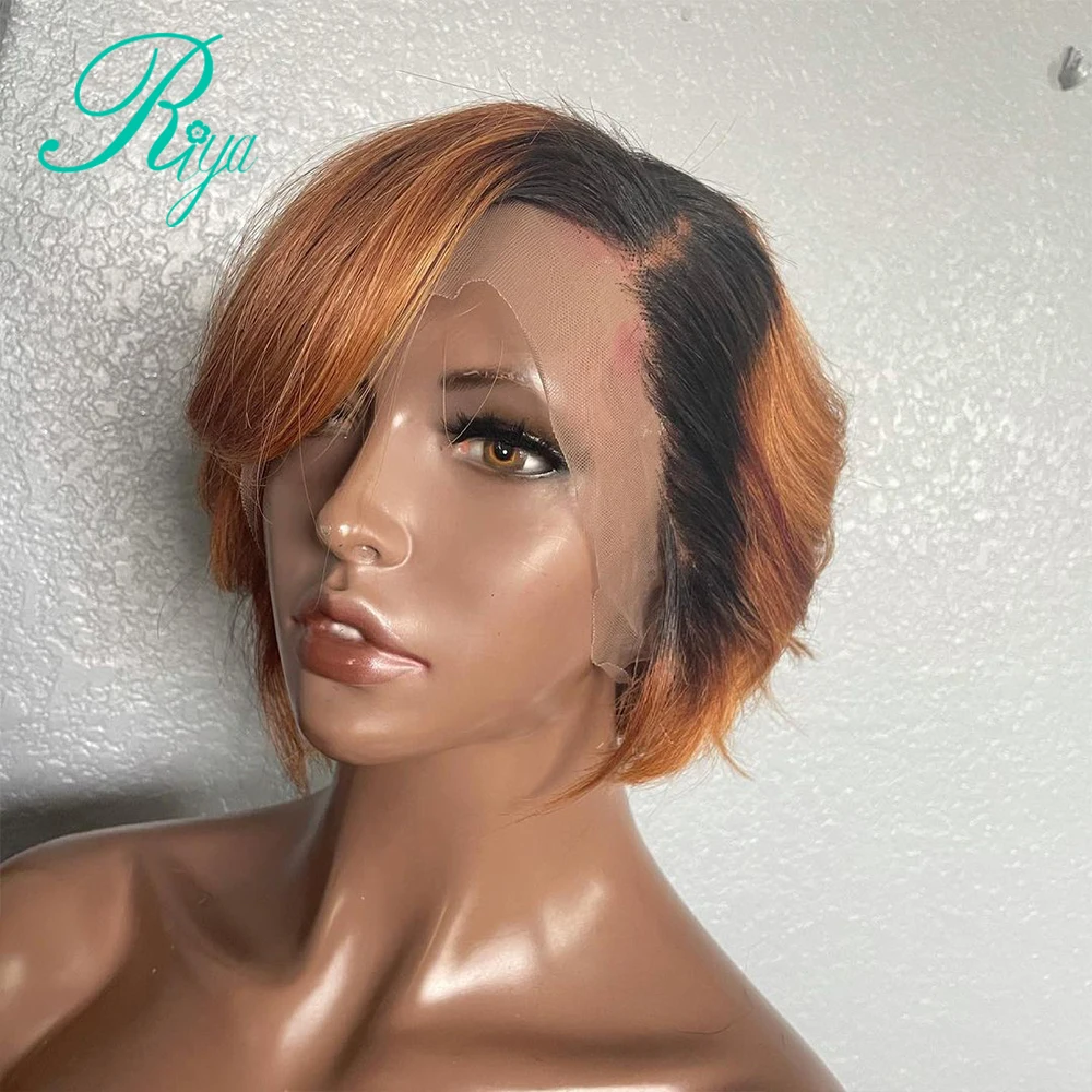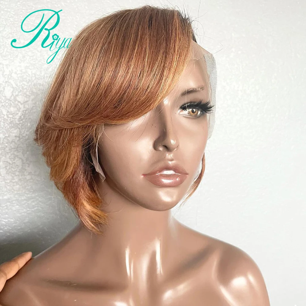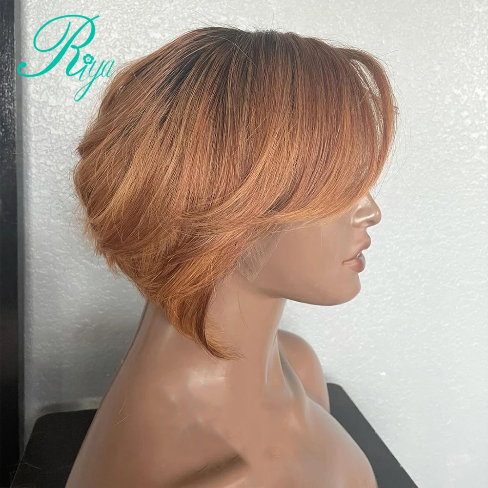 Медовый светлый Омбре оранжевый имбирный цвет Волнистые Короткие Волнистые Волосы 4X4 парик с застежкой на сетке предварительно выщипанные кружевные передние волосы парик Remy