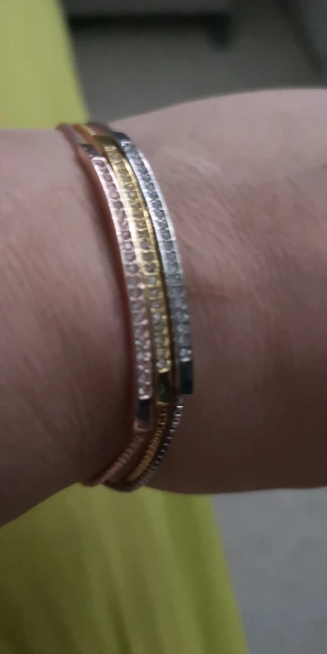 Браслеты очень красивые. Но низкого качества. Особенно Серебряный, который стерся на моей коже с 1-го дня. С другой стороны, каналы размыты. По цене делает работу. Лучше носить их очень мало времени, чтобы держать их дольше.