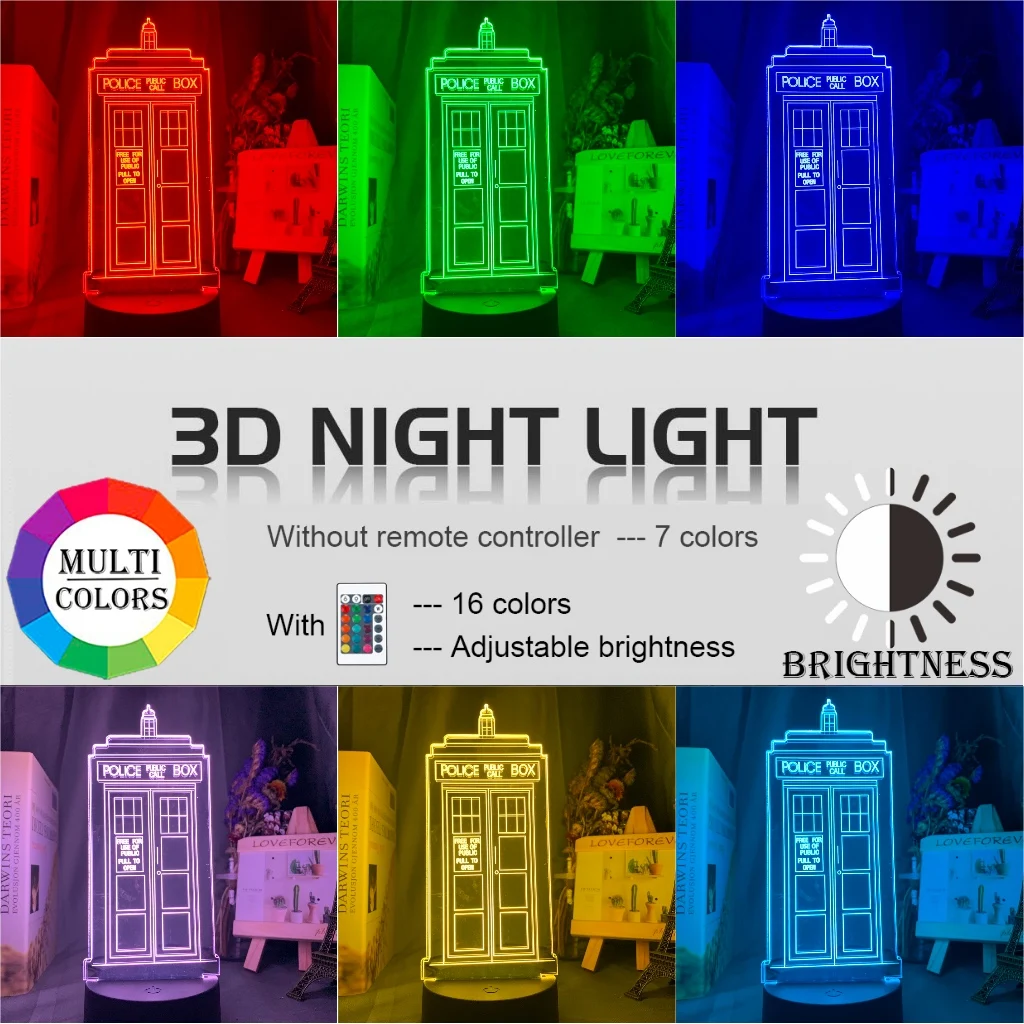 Оптический светодиодный ночсветильник 3d, ночник с врачом кто, приставкой для звонков, декоративный ночсветильник для детской спальни, полицейская шкатулка, подарок для детской комнаты, настольная лампа