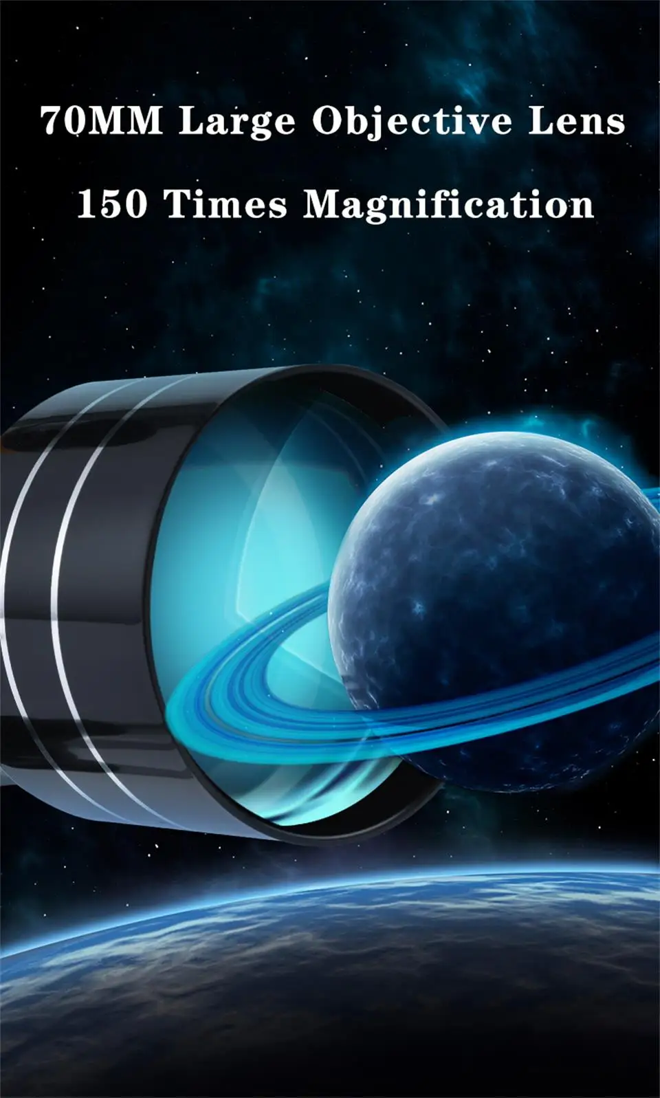 Телескоп 150X, профессиональный, мощный, портативный, с треногой, для слабого освещения, для наблюдения за звездами, Луной
