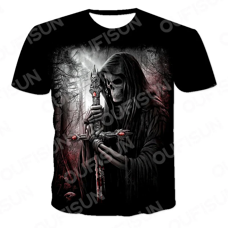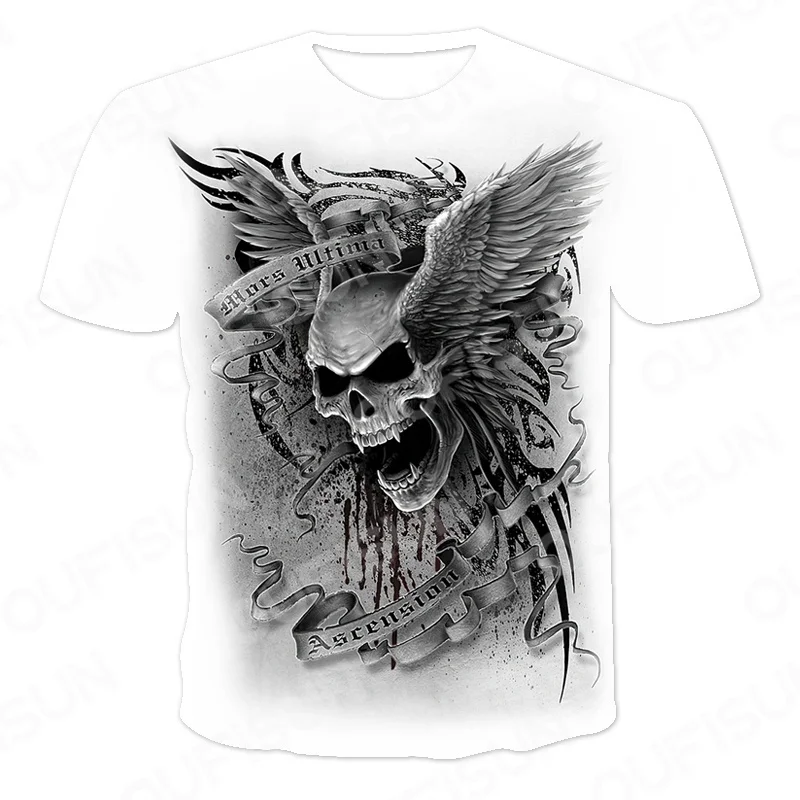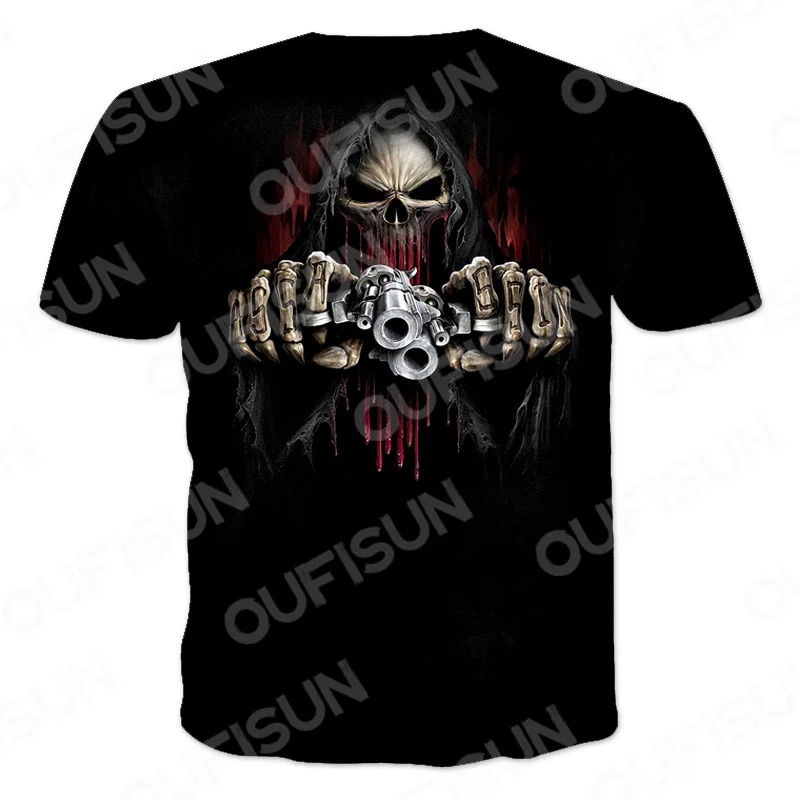 Новинка лета 2021, Мужская футболка с изображением черепа, демона, ужасные 3D топы, впечатляющая Мужская рубашка с круглым вырезом, модная футболка большого размера для мальчиков