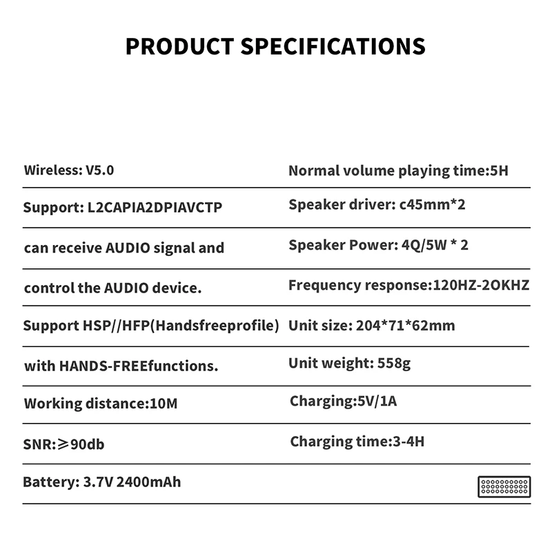 1 динамик TG2711x USB кабель для зарядки1x Aux аудио кабель1x Ремешок
