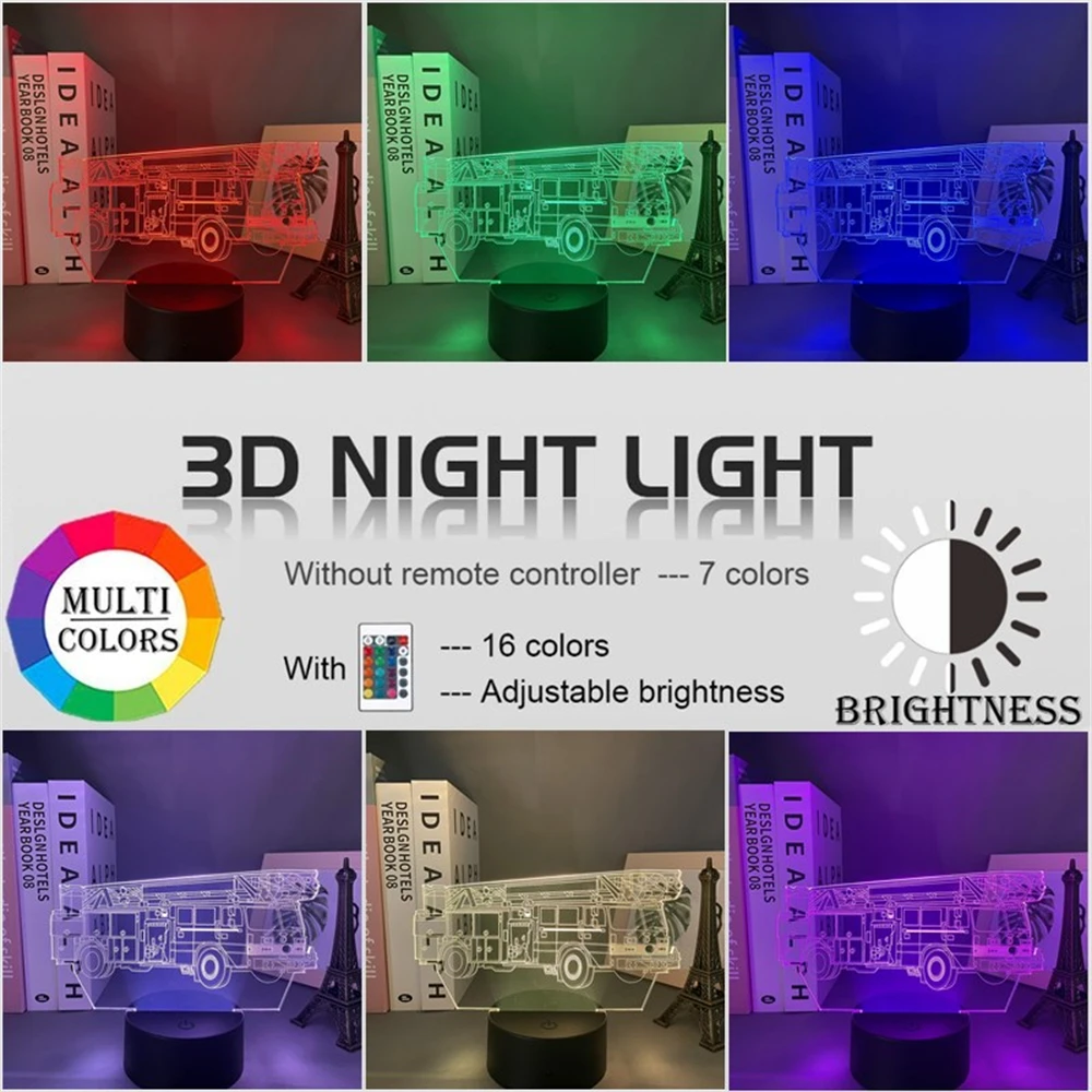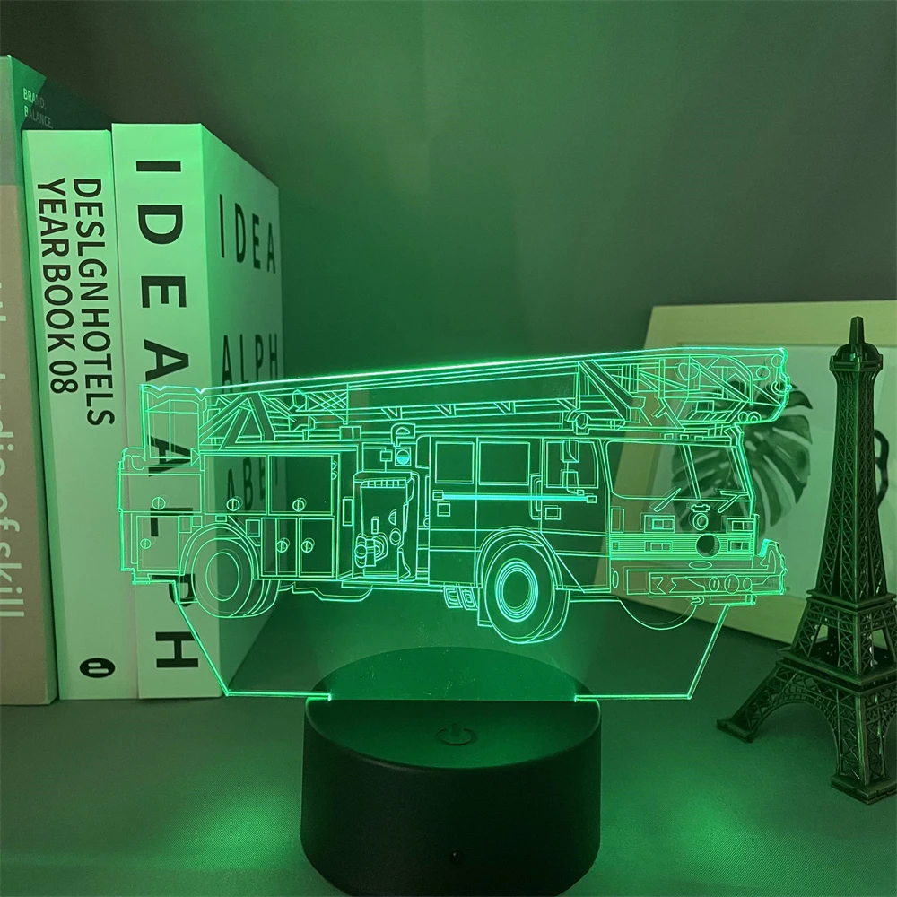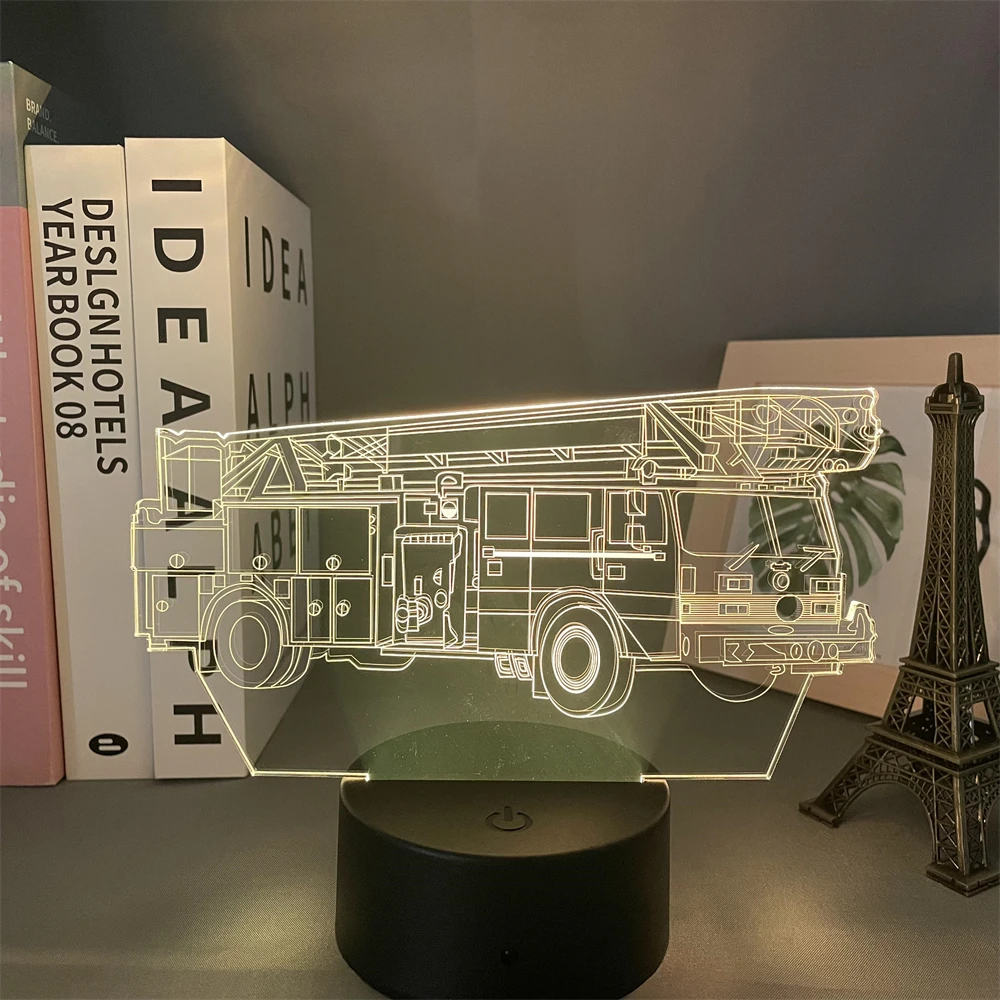 Светодиодный ночник для пожарной машины с сенсорным датчиком, меняющий цвет ночник для детской, спальни, Декор, противопожарная машина, настольный 3d светильник в подарок