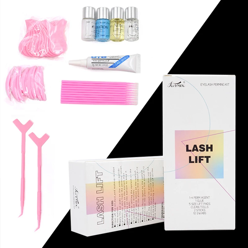 В комплект входят Пермские средства, фиксация, питание, клей для ресниц, чистящее средство и чистящие подушечки.