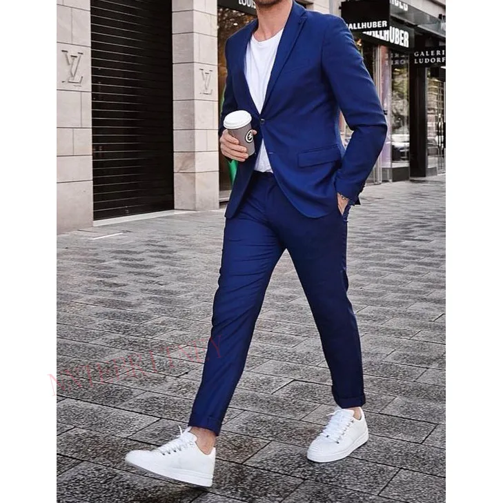 Мужской свадебный костюм, Синий Облегающий костюм из 2 предметов, индивидуальный Мужской Блейзер под смокинг для выпускного вечера, 2021
