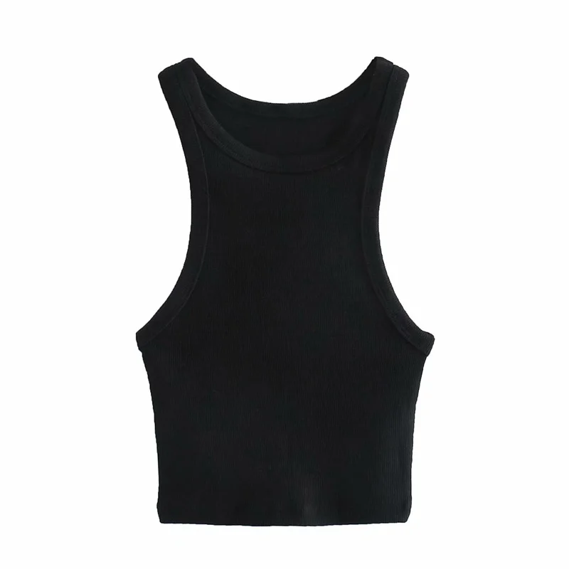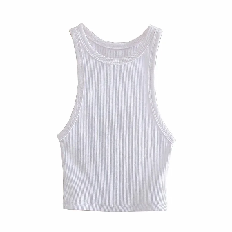 ZXQJ женские 2021 милые модные Стрейчевые облегающие укороченные вязаные блузки винтажные с круглым вырезом без рукавов Женские рубашки шикарные топы