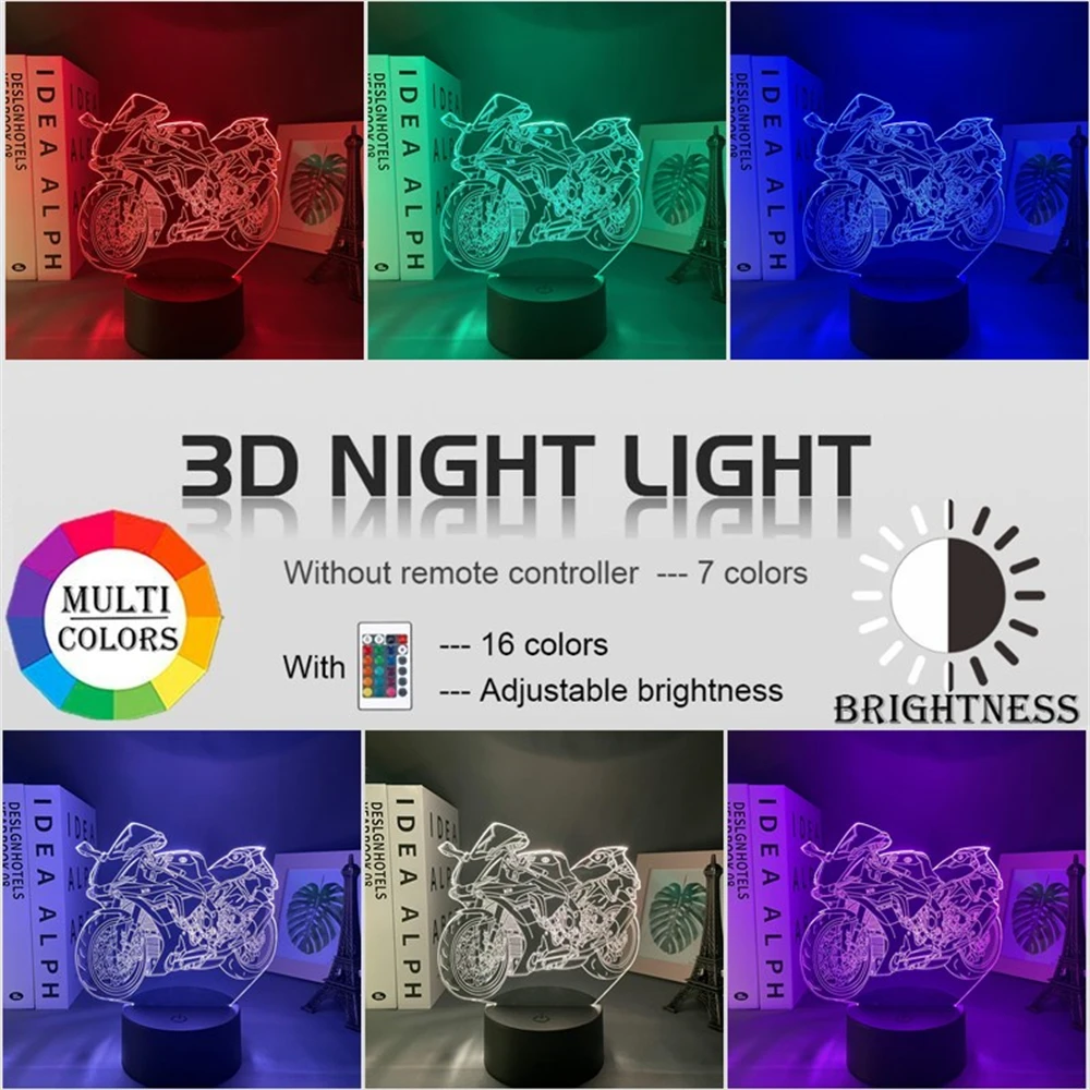 Красивые мотоциклетные светодиодный ночной Светильник для детской спальни декора уникальный подарок на день рождения для детей кабинет стол 3d лампы мотоцикл