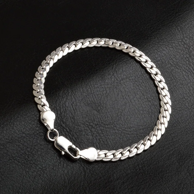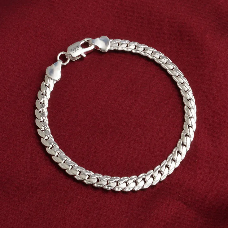 925 пробы Серебряные ювелирные изделия набор 5 мм цепочка с плоским плетением Браслеты рождественские подарки