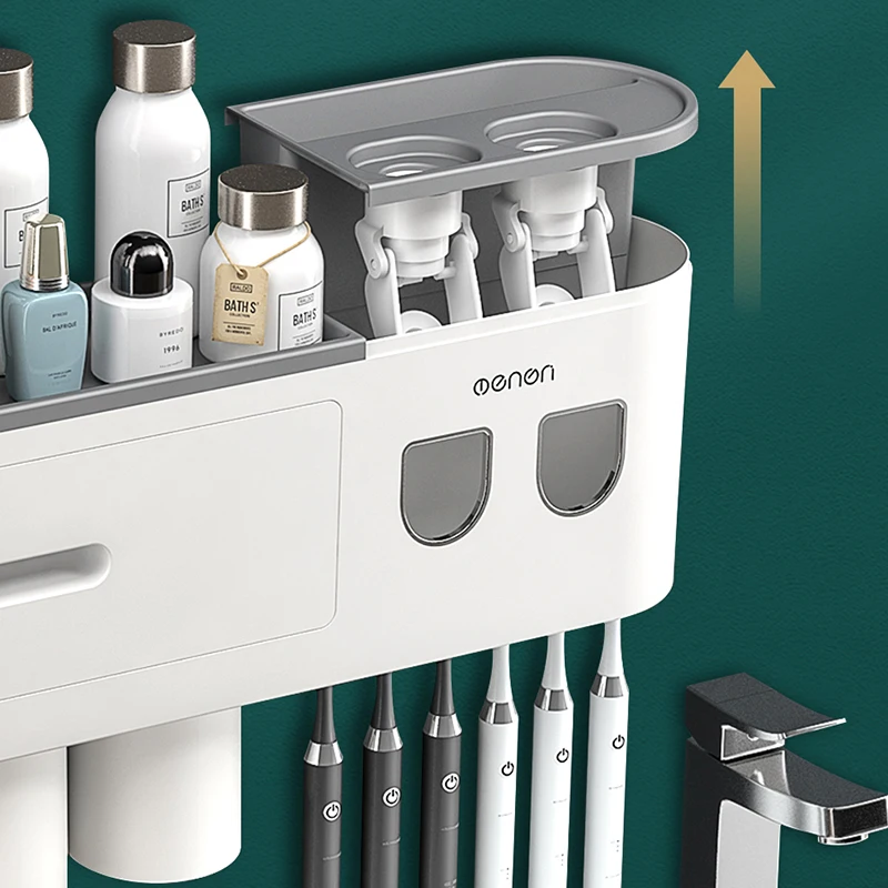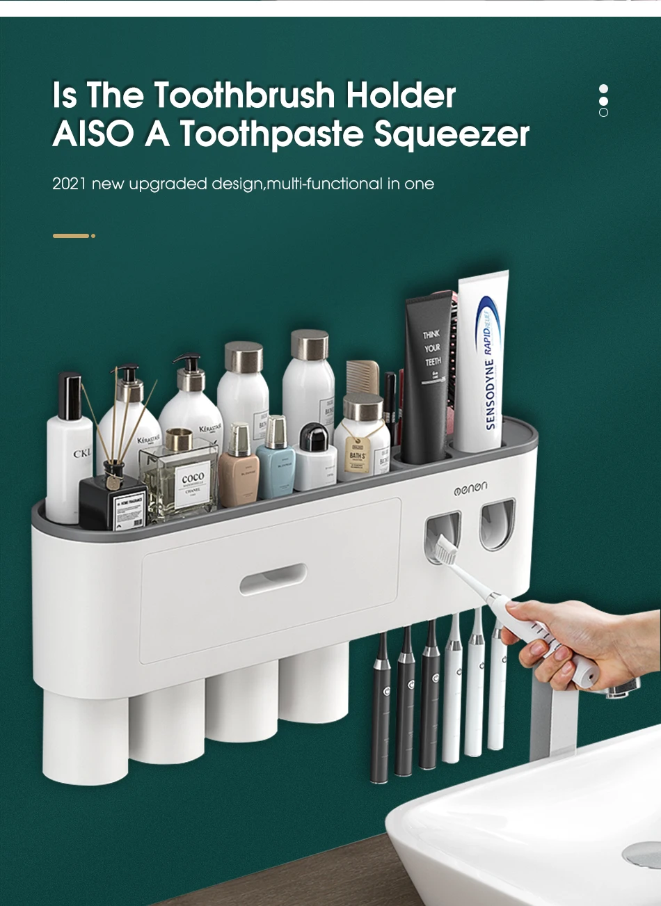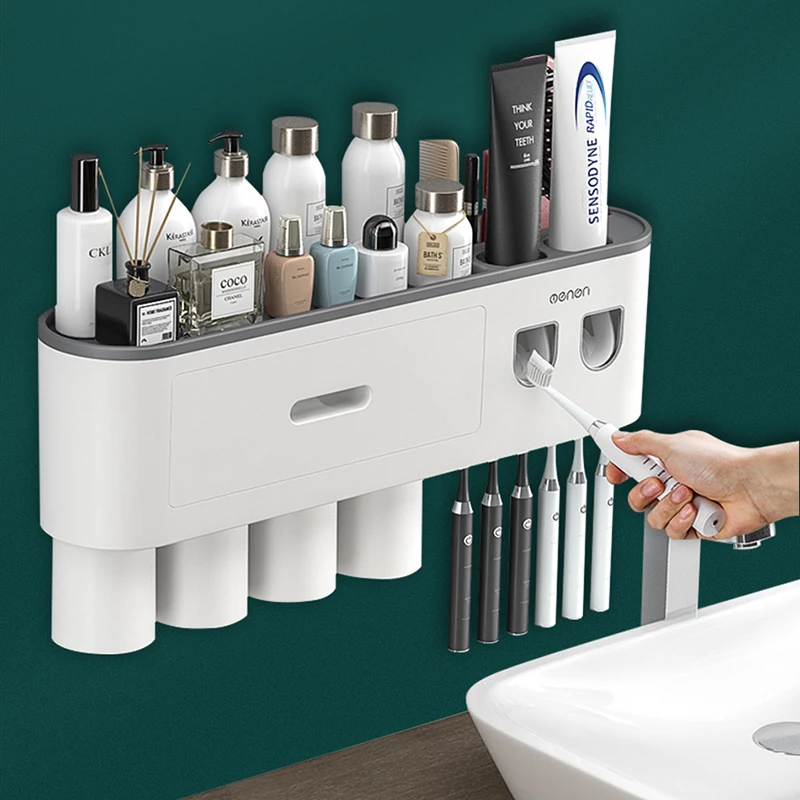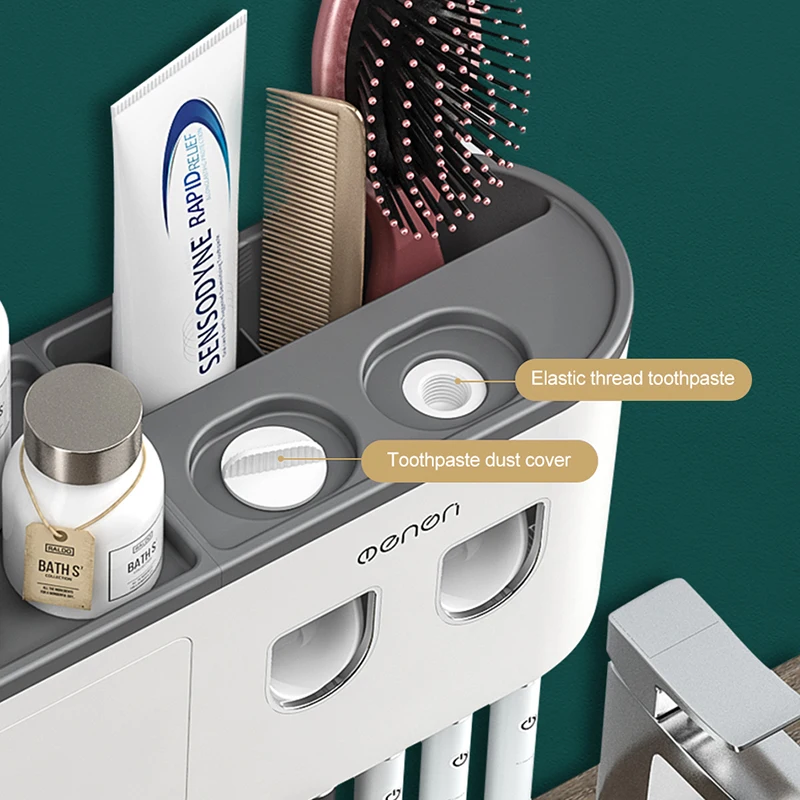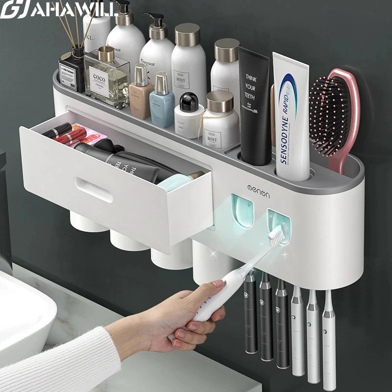 Настенный держатель для зубных щеток AHAWILL, автоматический выдавливатель зубной пасты, полка для хранения, аксессуары для ванной комнаты