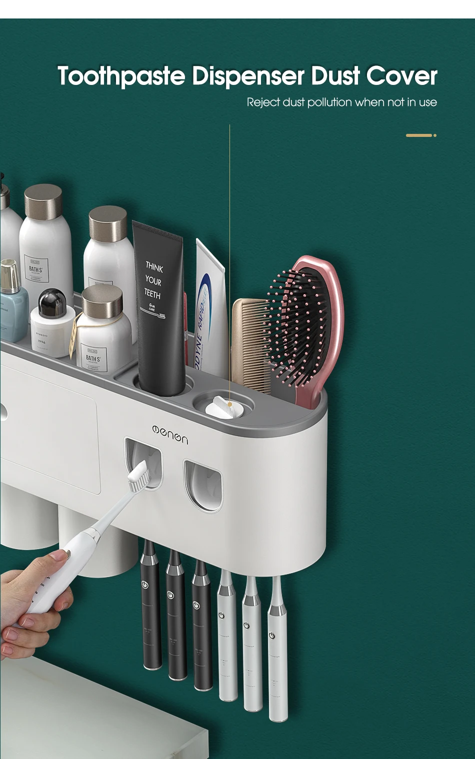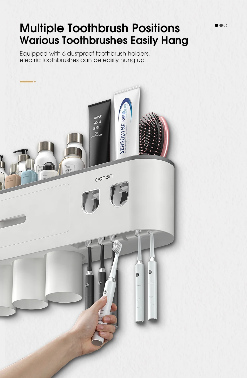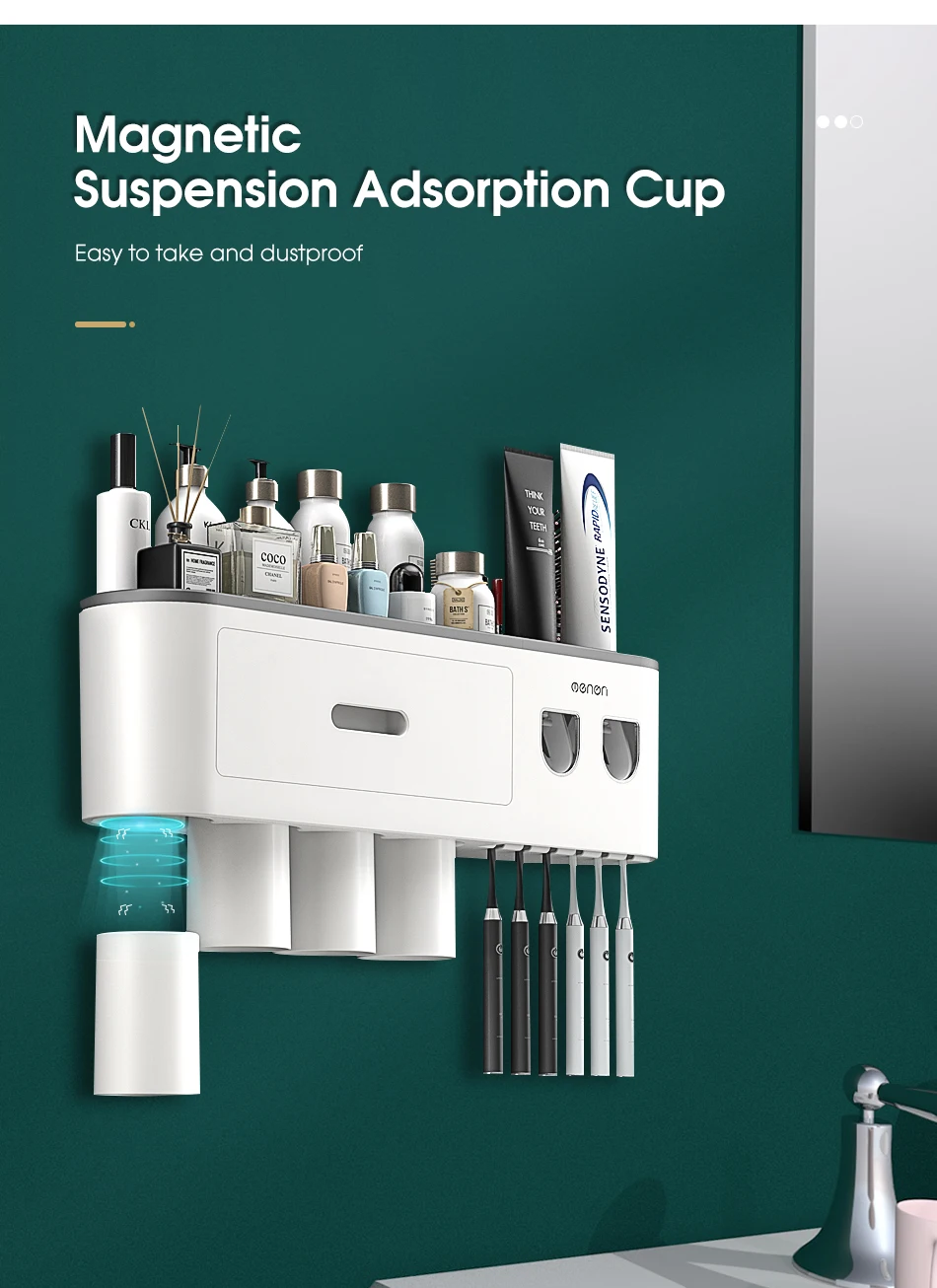 Настенный держатель для зубных щеток AHAWILL, автоматический выдавливатель зубной пасты, полка для хранения, аксессуары для ванной комнаты
