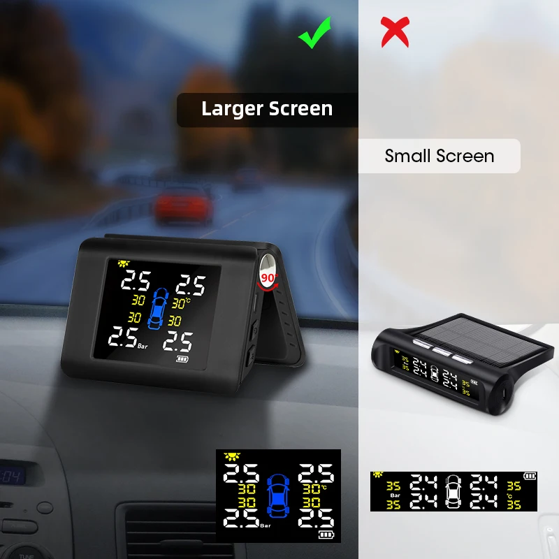 -Зарядка от солнечной энергии, отображение цвета ЖК-дисплея, регулируемая яркость-Контроль давления и температуры в реальном времени-Предупреждение о низком давлении воздуха/высокой температуре-Настройка датчика: Узнайте Новый идентификационный код датчика при замене датчика-Два блока (PSI / Bar) изменяются, вы можете установить тот, который вам нравится.-Значение давления: около 0-4 бар