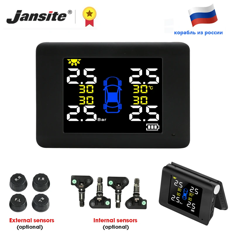 Система контроля давления в шинах Jansite, умная система контроля давления в шинах, на солнечной батарее, большой экран, USB, водонепроницаемый, встроенный или внешний датчик