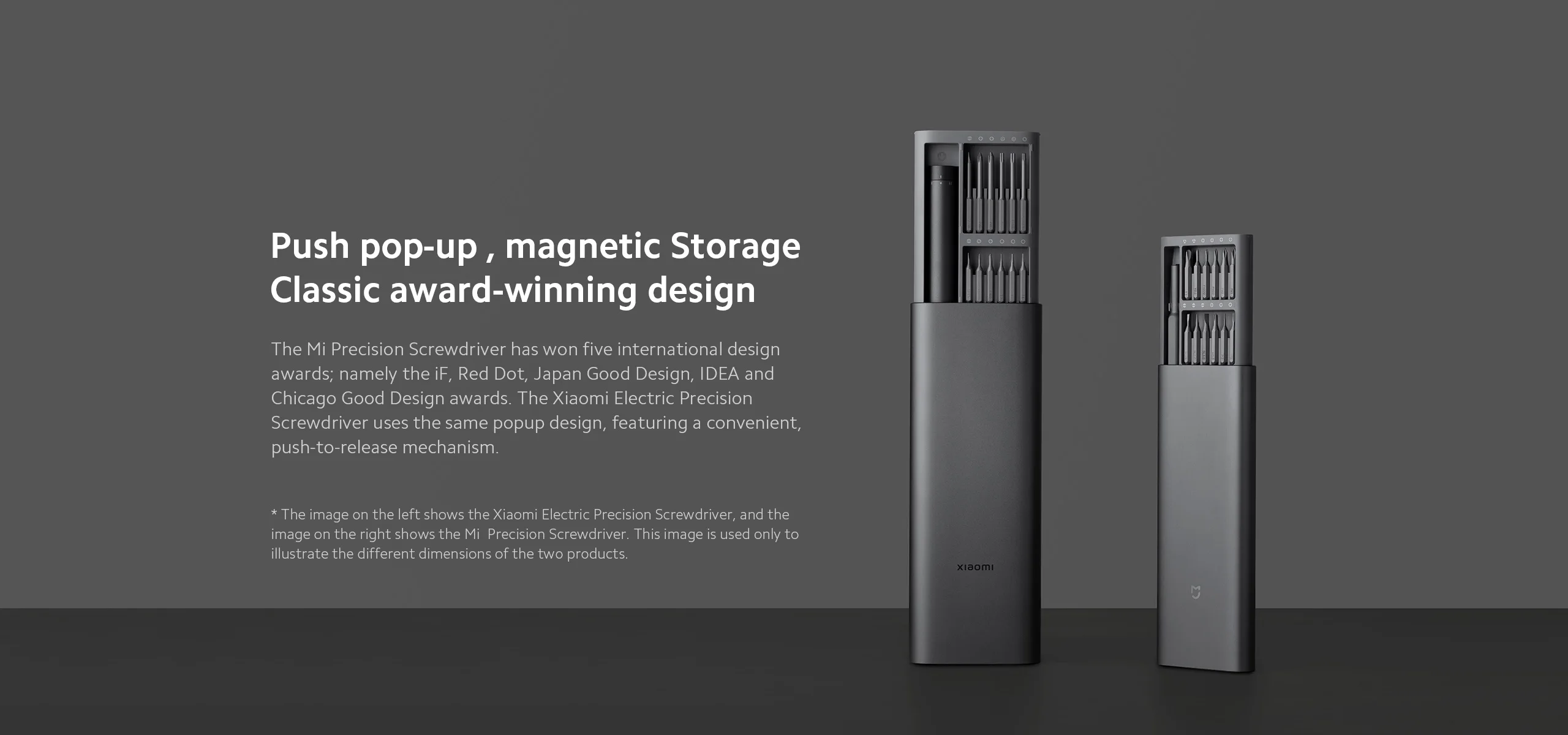 Электрическая Прецизионная отвертка Xiaomi использует всплывающий дизайн, отличающийся удобным, push-to-releasemechanism.
