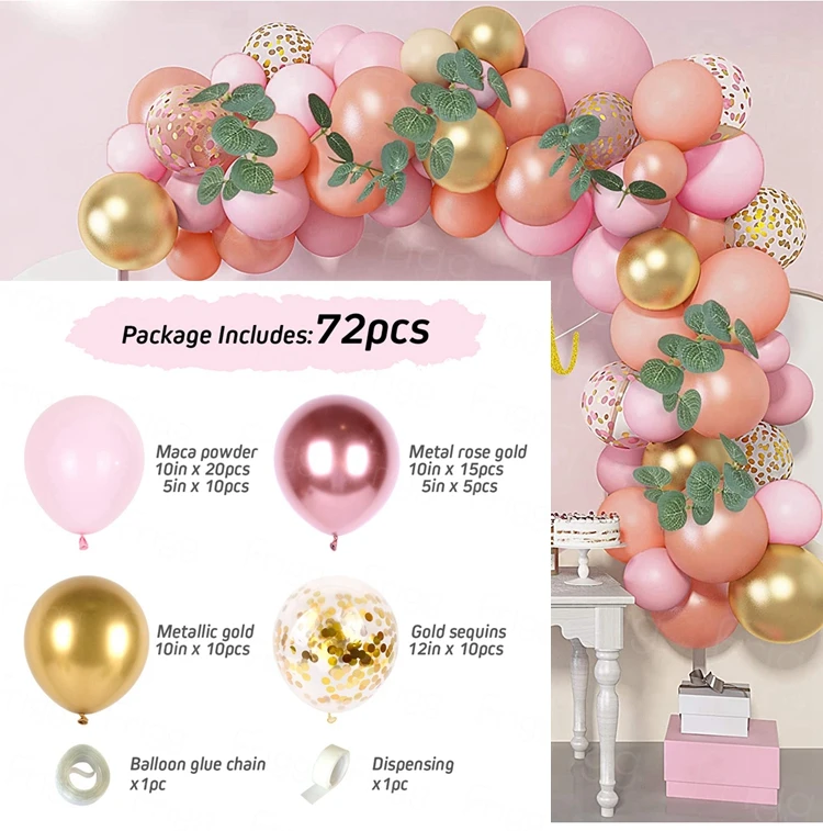 Цвета розового золота Розовый Макарон на день рождения воздушные ша...