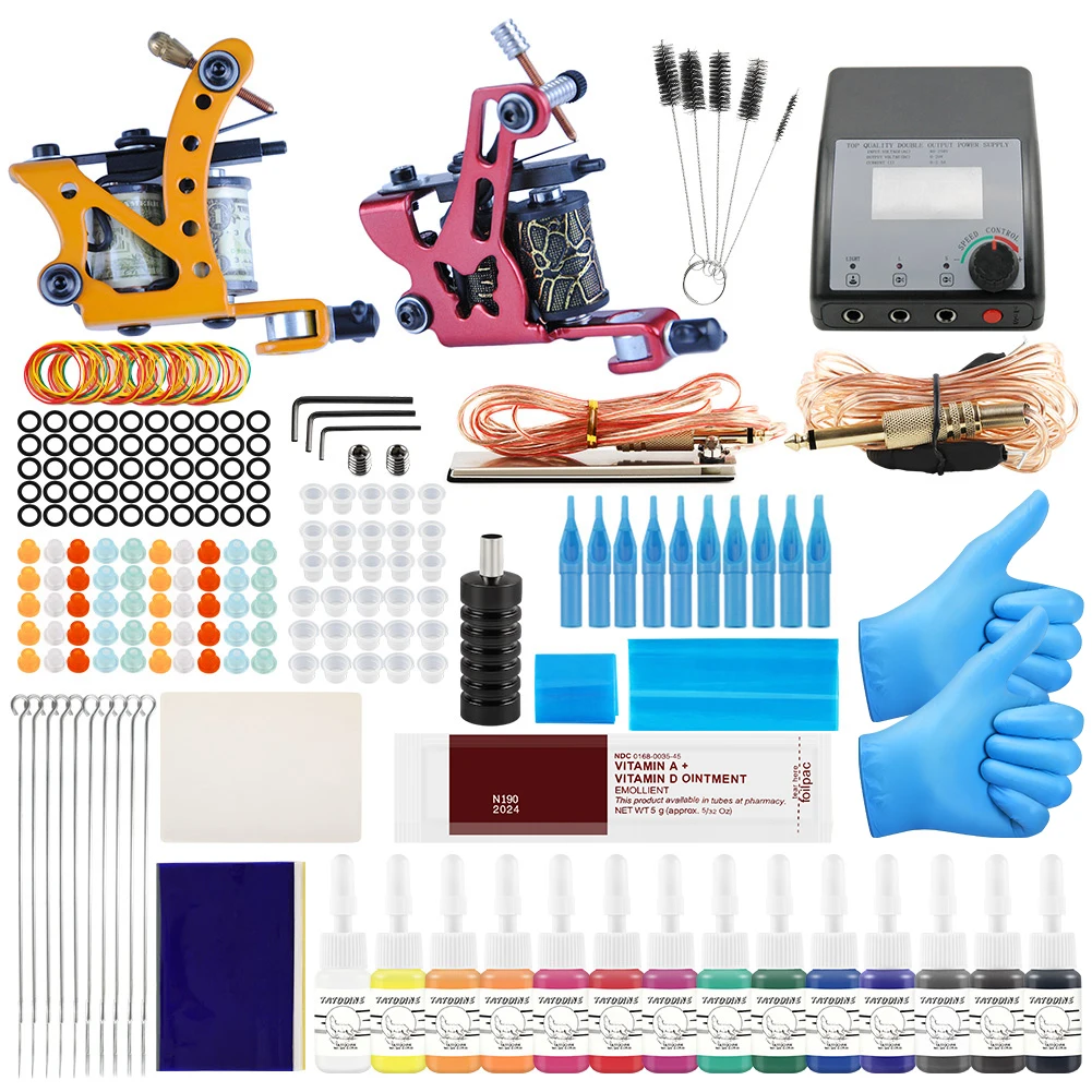 Полный набор для татуировок, 2 тату-машинки, источник питания для п...