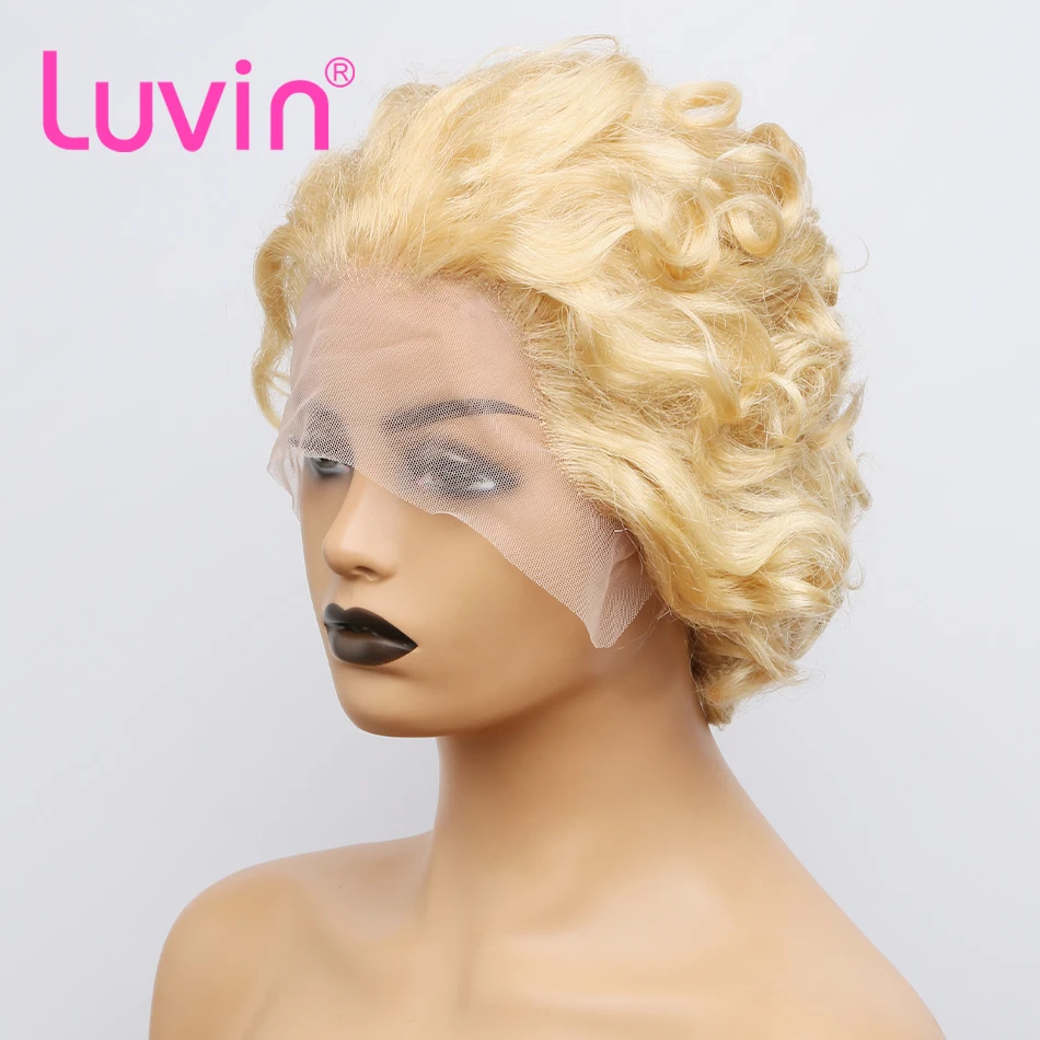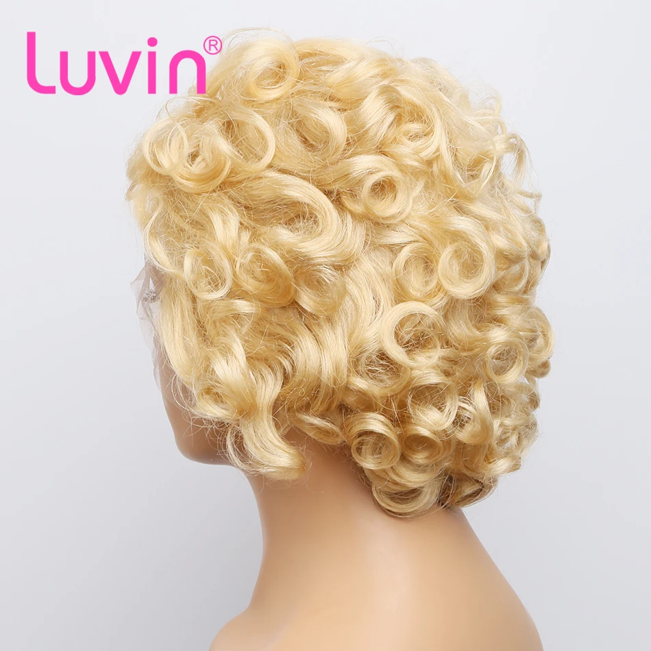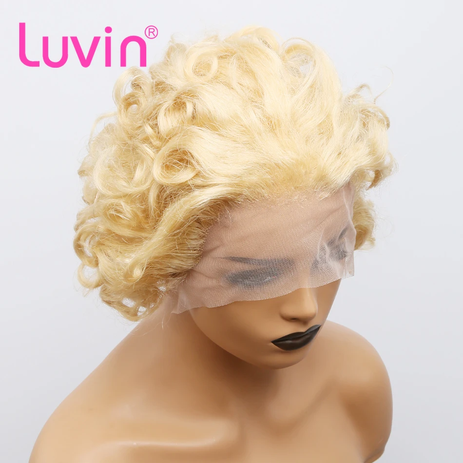 Luvin цветные человеческие волосы парики для чернокожих женщин парик с вырезанными волосами T часть 613 блонд кружевной фронтальный парик вьющиеся волосы боб Реми парики