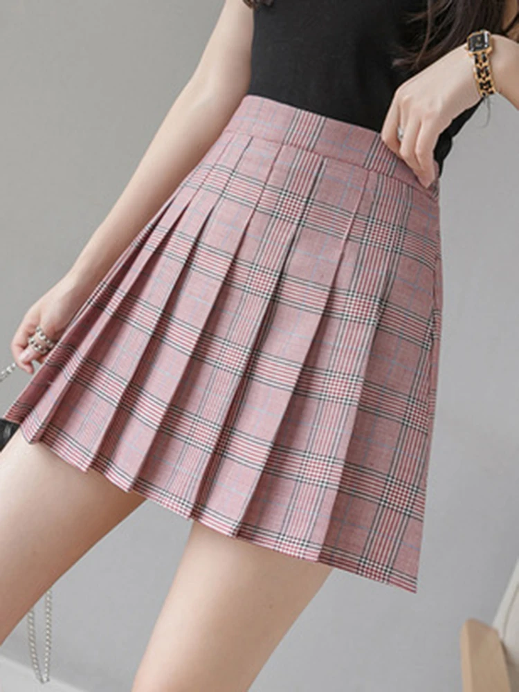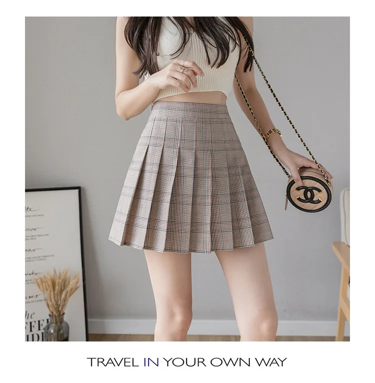 Женские летние юбки, новинка 2021, Корейская клетчатая Женская Студенческая юбка с высокой талией, привлекательная Милая стильная плиссированная мини-юбка на молнии для девочек