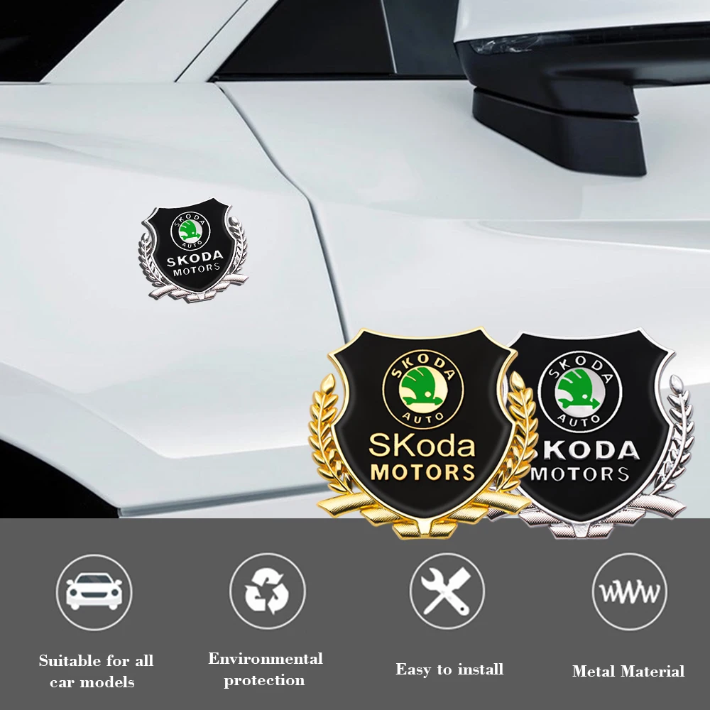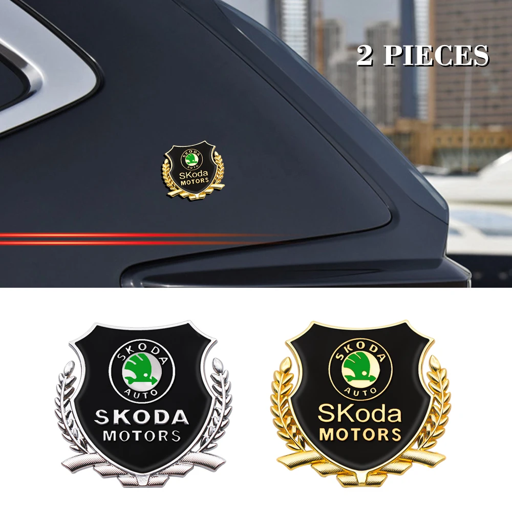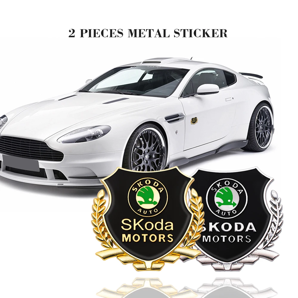 Автомобильные 3D наклейки из металлического сплава, 2 шт., значок, наклейки, внешние аксессуары для Skoda Octavia Fabia Rapid Yeti Kodiaq