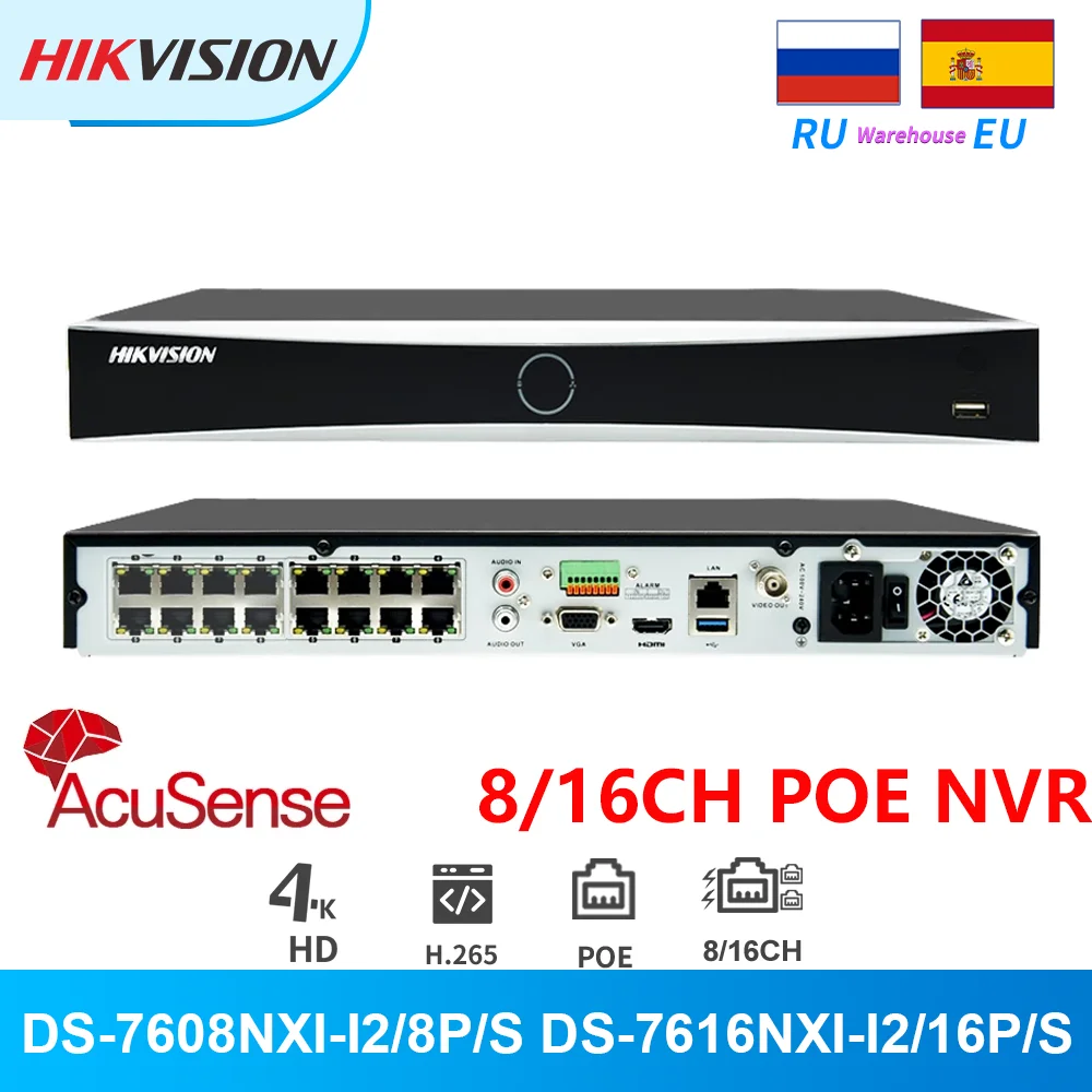 Hikvision AcuSense PoE NVR 8/16CH 12MP 4K DS-7608NXI-I2/8 P/S DS-7616NXI-I2/16 P/S для ip-камеры видеорегистратор Распознавание лиц