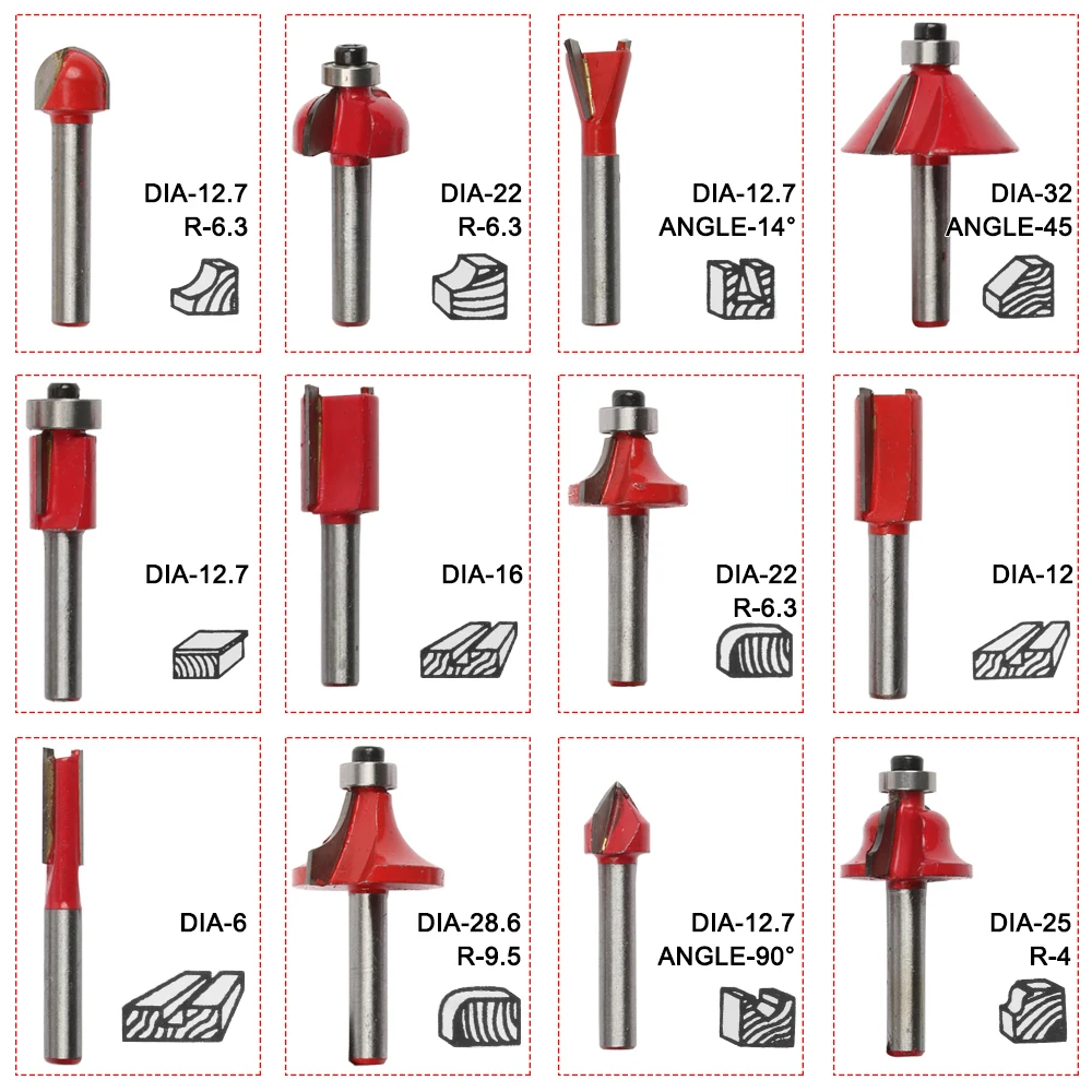 Фреза твердосплавная с хвостовиком 6,35 мм, 12 шт., 15 шт.