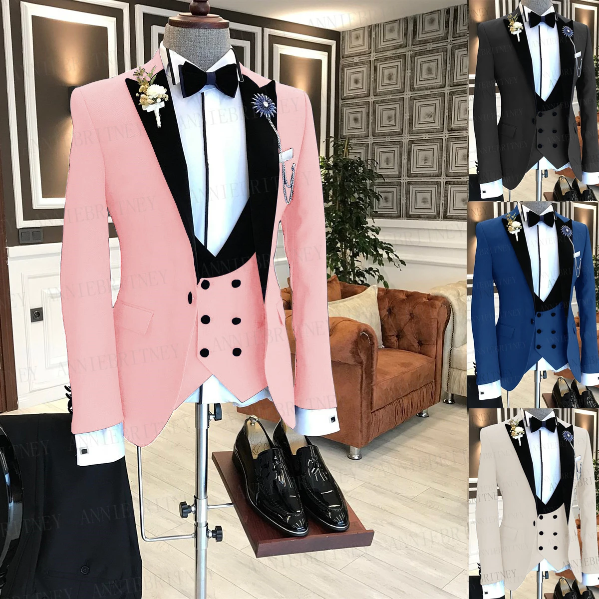 Деловые мужские костюмы 2021, свадебное приталенное платье для жениха, смокинг, индивидуальный пошив, большой размер, розовый блейзер, деловой пиджак, жилет, брюки, 3 шт.