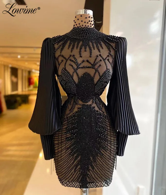 Lowime платье, расшитое бисером вручную черное коктейльное вечерние платья одежда с длинным рукавом Короткое вечернее платье 2021 размера плюс по индивидуальному заказу, платье как у знаменитости
