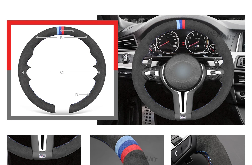 A: светло-синий + красный маркерB + C: темно-серая АлькантараD: светло-синий + Красная Нить