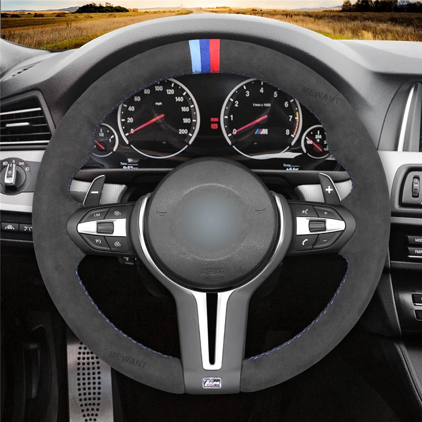 Темно-серый Алькантара черный чехол рулевого колеса автомобиля для BMW M2 F87 M3 F80 M4 F82 F83 M5 F10 M6 F06 F12 F13 X5 M F85 X6 F86