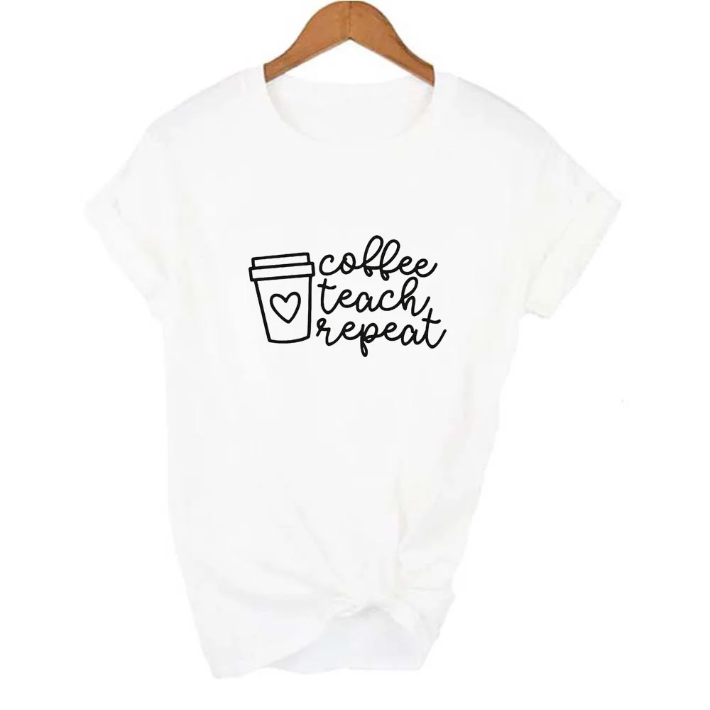 Женская футболка с надписью «Teacher life» и надписью «Teacher coffee», винтажные топы, женская повседневная одежда, Ropa De Mujer