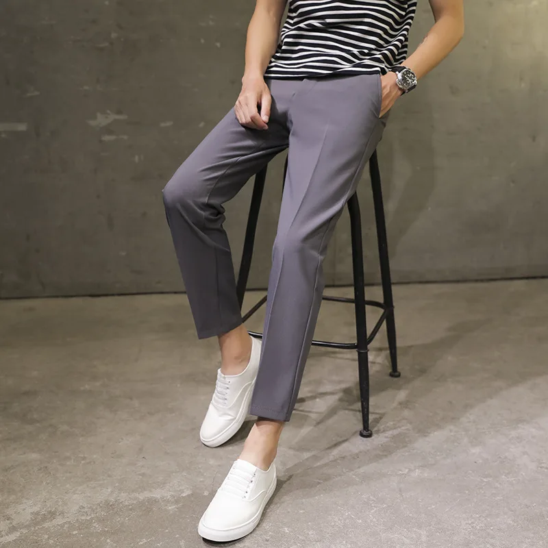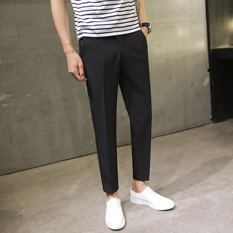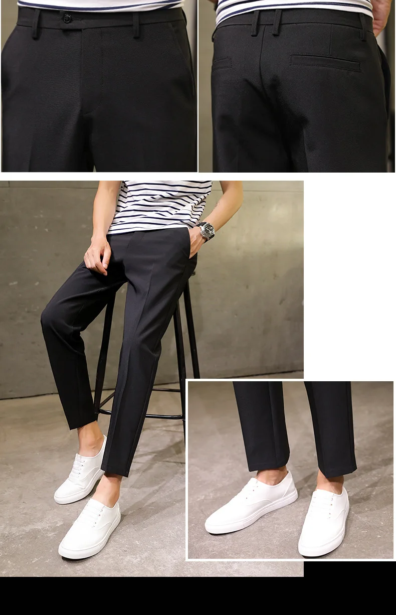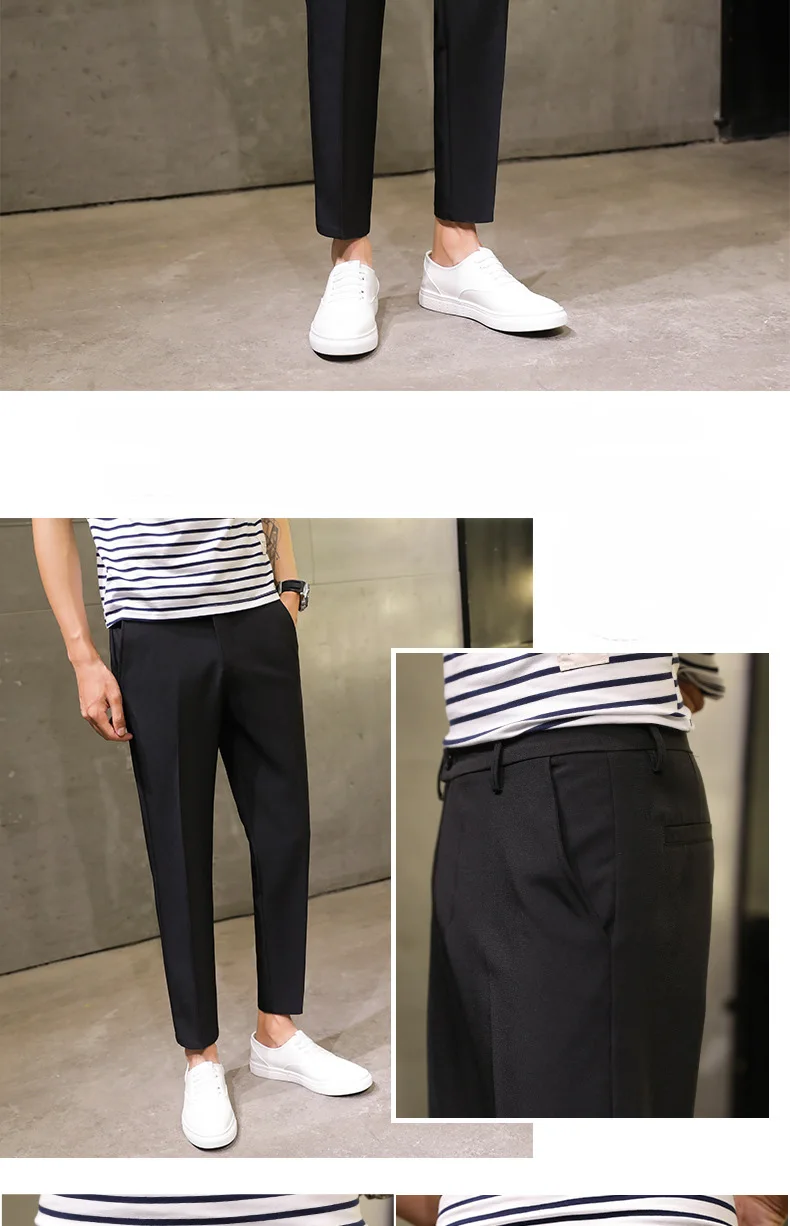 Мужские брюки до щиколотки, повседневные Прямые однотонные деловые брюки, весна-лето