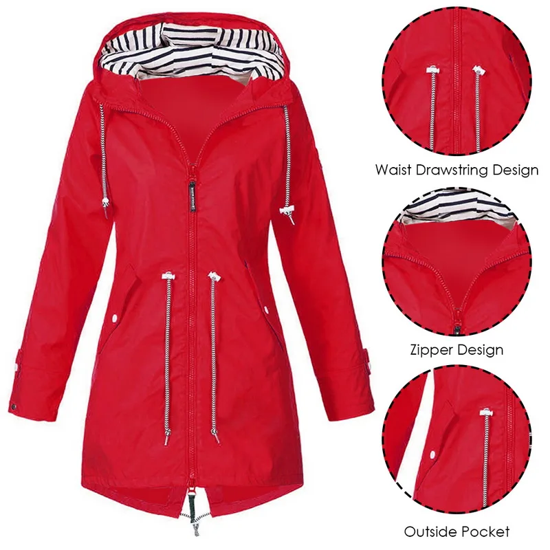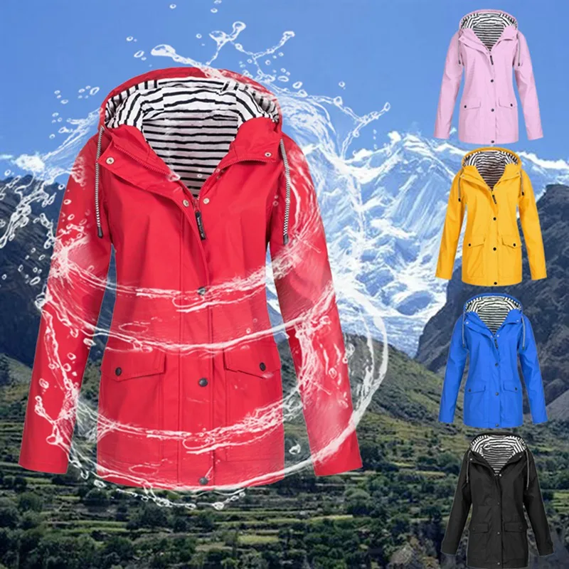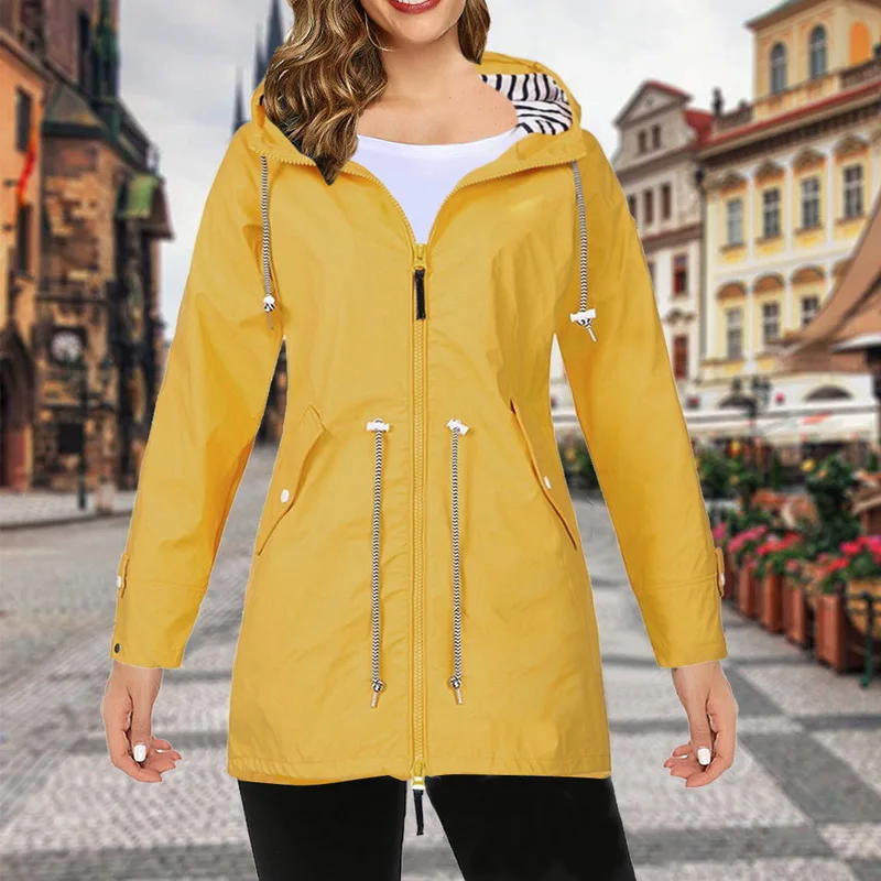 2021 Осень-Зима Женская длинная ветрозащитная уличная куртка с капю...