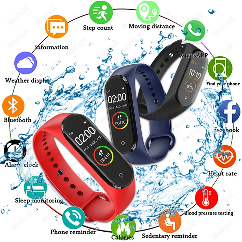 Цветной смарт-браслет M4, водонепроницаемый смарт-браслет с монитор...