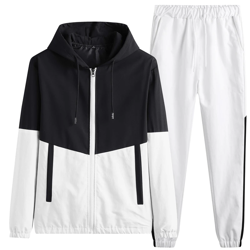 Комплект спортивный мужской из двух предметов, свитшот с капюшоном и затягивающимся шнурком, на молнии, повседневный комплект в стиле хип-хоп, пэчворк, Осень-зима