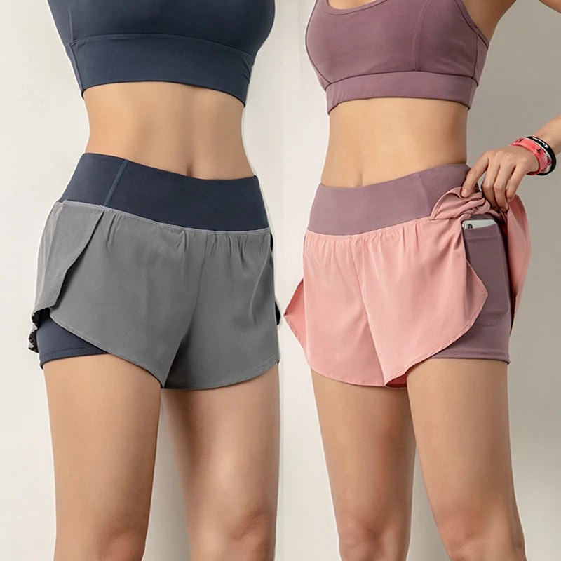 Шорты спортивные женские, 2 в 1, с высокой талией, антибликовые, быстросохнущие