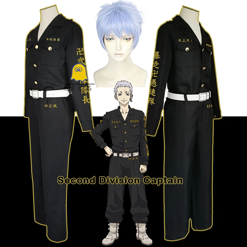 Костюм для косплея Такаси мицуя из аниме «Токийские мстители», черная униформа, короткий парик, капитан Второй дивизии, наряд для вечеринки на Хэллоуин