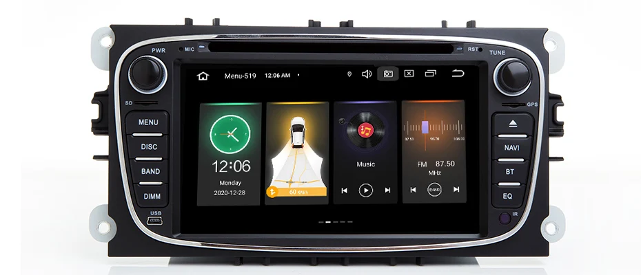 Автомагнитола мультимедийный видеоплеер для FordFocusS-MaxMondeo 9GalaxyC-Max навигация GPS Android 9,0 без DVD 2din 2 din черный