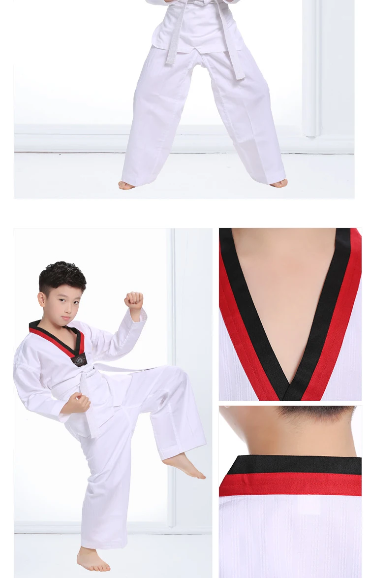 Белая униформа для тхэквондо, WTF, каратэ, дзюдо, Dobok, для детей и взрослых, унисекс, с длинным рукавом, TKD, костюмы Gi