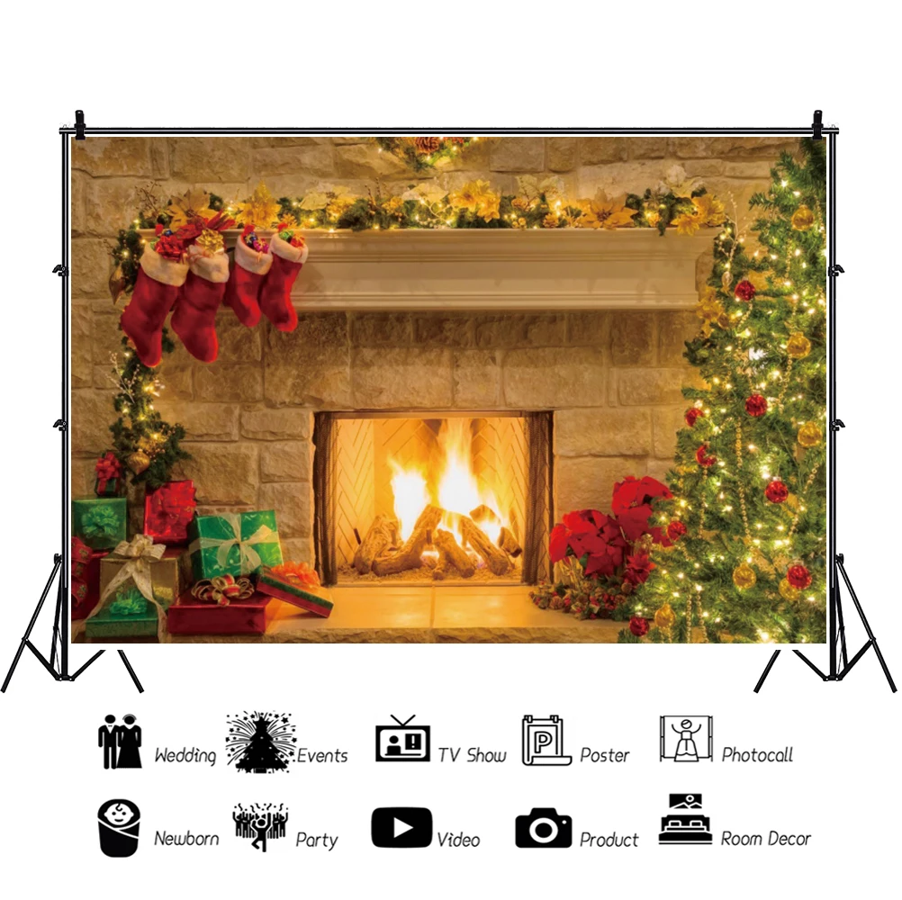 Laeacco Винтаж старый камин кирпичная стена пламя Рождественская елка плакат для портретной фотографии фон, фото-декорации