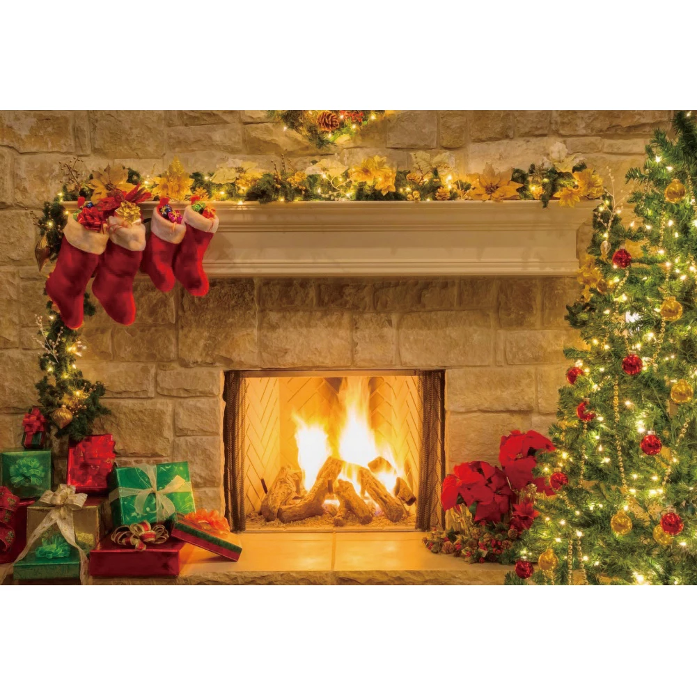 Фон для фотосъемки с изображением рождественской елки камина интерь...