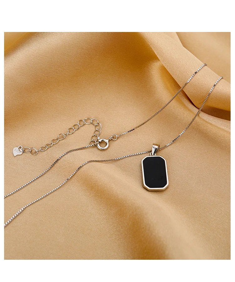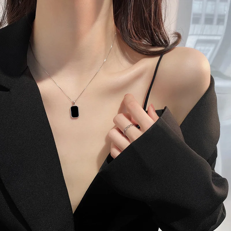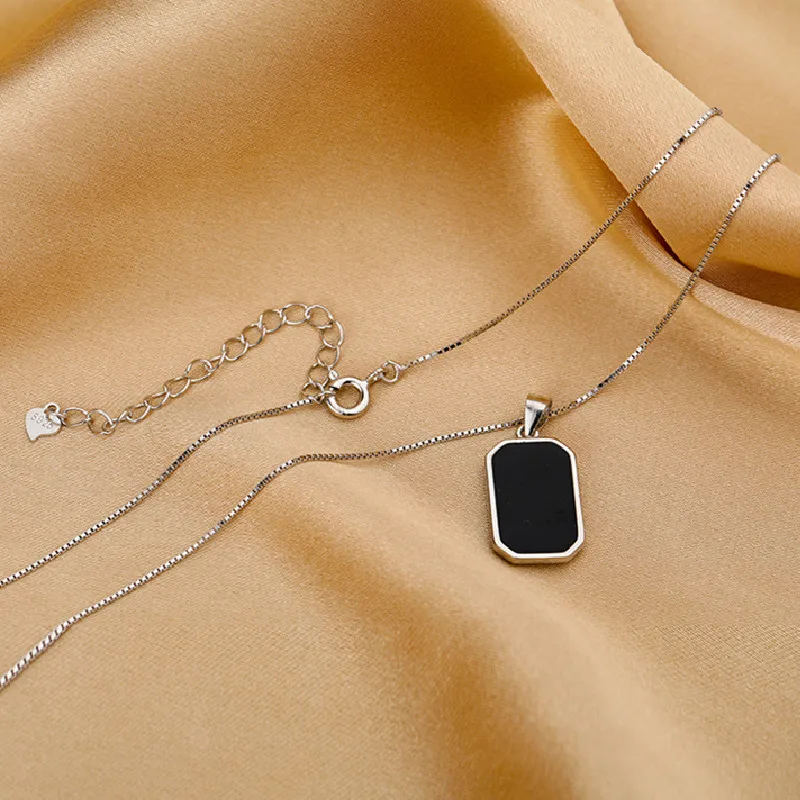 QMCOCO серебряный цвет простое ожерелье для женщин модный винтажный парный Креативный дизайн ранняя цепочка черный квадратный кулон
