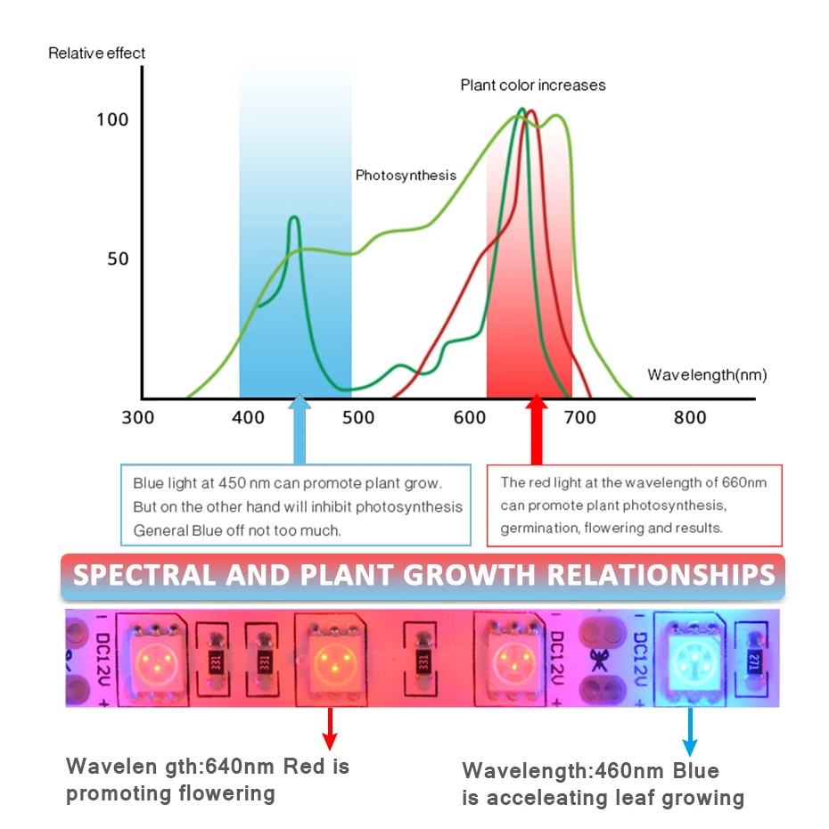 Скорость поглощения 750нм ~ 1000нм, стимулирует удлинение клеток, воздействие цветения и прорастания семян