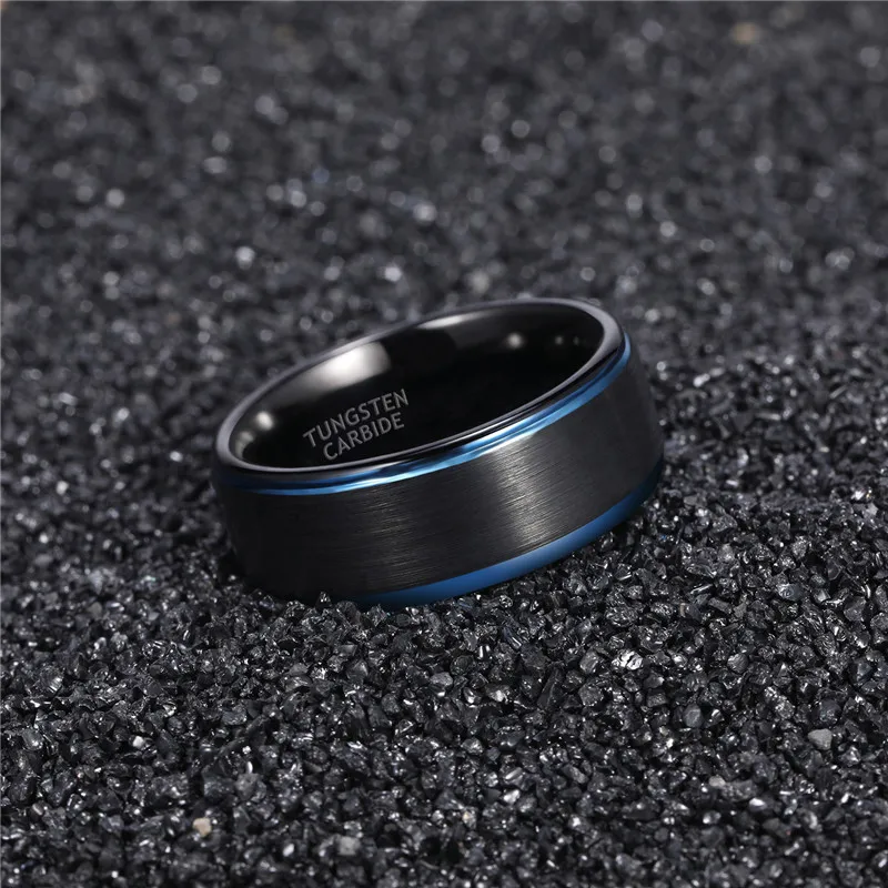 Номер моделиWomen Men Black Ring with Blue Line Brushed 6mm 8mm Tungsten Carbide
