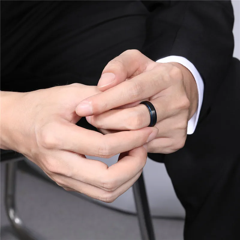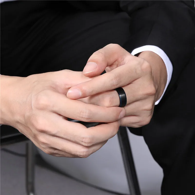 Somen модное 8 мм матовое черное титановое кольцо Обручальное кольц...