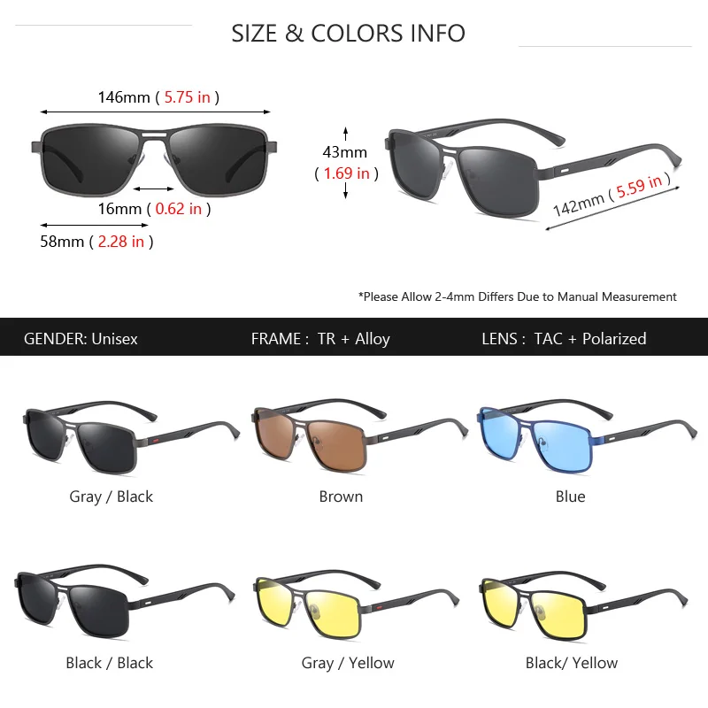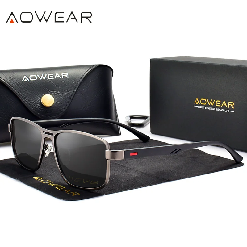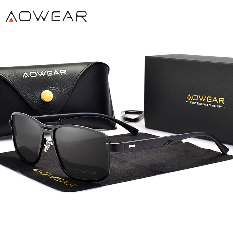 Солнцезащитные очки AOWEAR в прямоугольной оправе, для мужчин и женщин, поляризационные, в стиле ретро, с функцией ночного видения, для вождения автомобиля